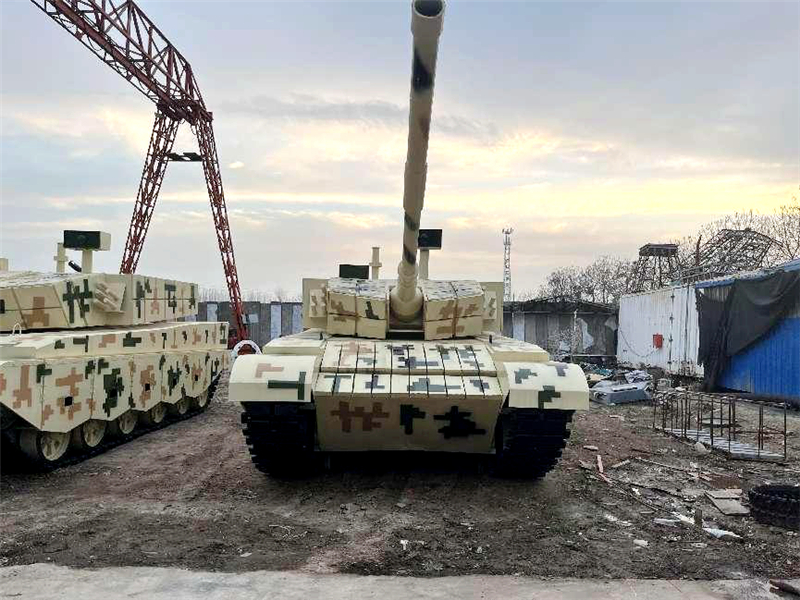 走进这处厂房,映入眼帘的是一排排高仿真的“坦克”“航天火箭”“歼20战斗机”等大型军事装备模型,让人仿佛置身于国防教育基地。谈起创作军事装备模型的起因,朱可可说,源于给自家孩子做的一个铁皮小坦。“因为一句玩笑话,就是说你这么调皮又喜欢这个东西,玩不几天就坏了,烦了给你做个铁的。就是这句话,让我脑子里面有了个想法,当时我记得就给他做了个铁的。”朱可可说,丈夫魏山找来废铁皮,捣鼓了半个多月,终于给孩子做了一个铁皮小坦克,孩子非常喜欢。