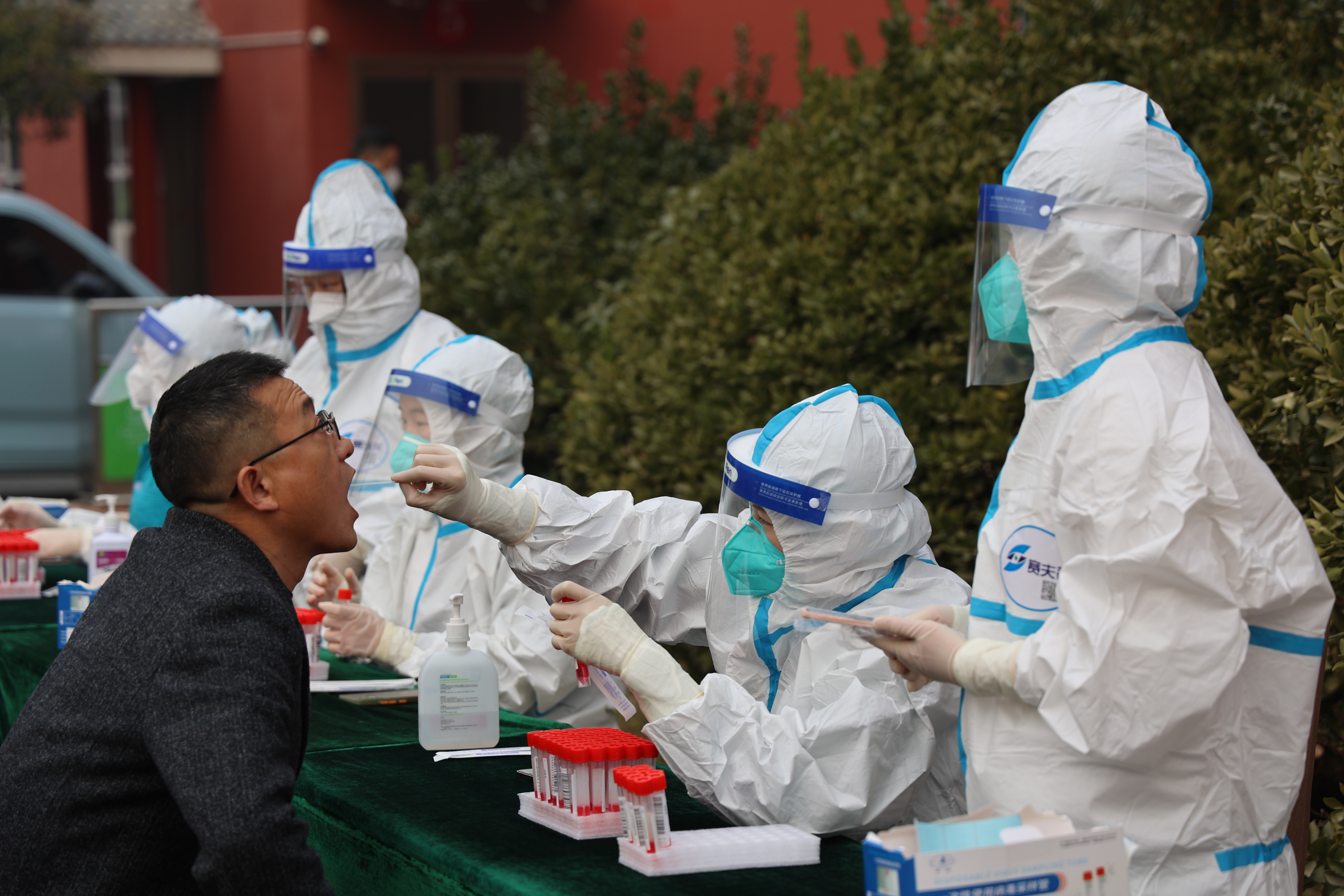 医务人员正在对参会人员进行核酸检测