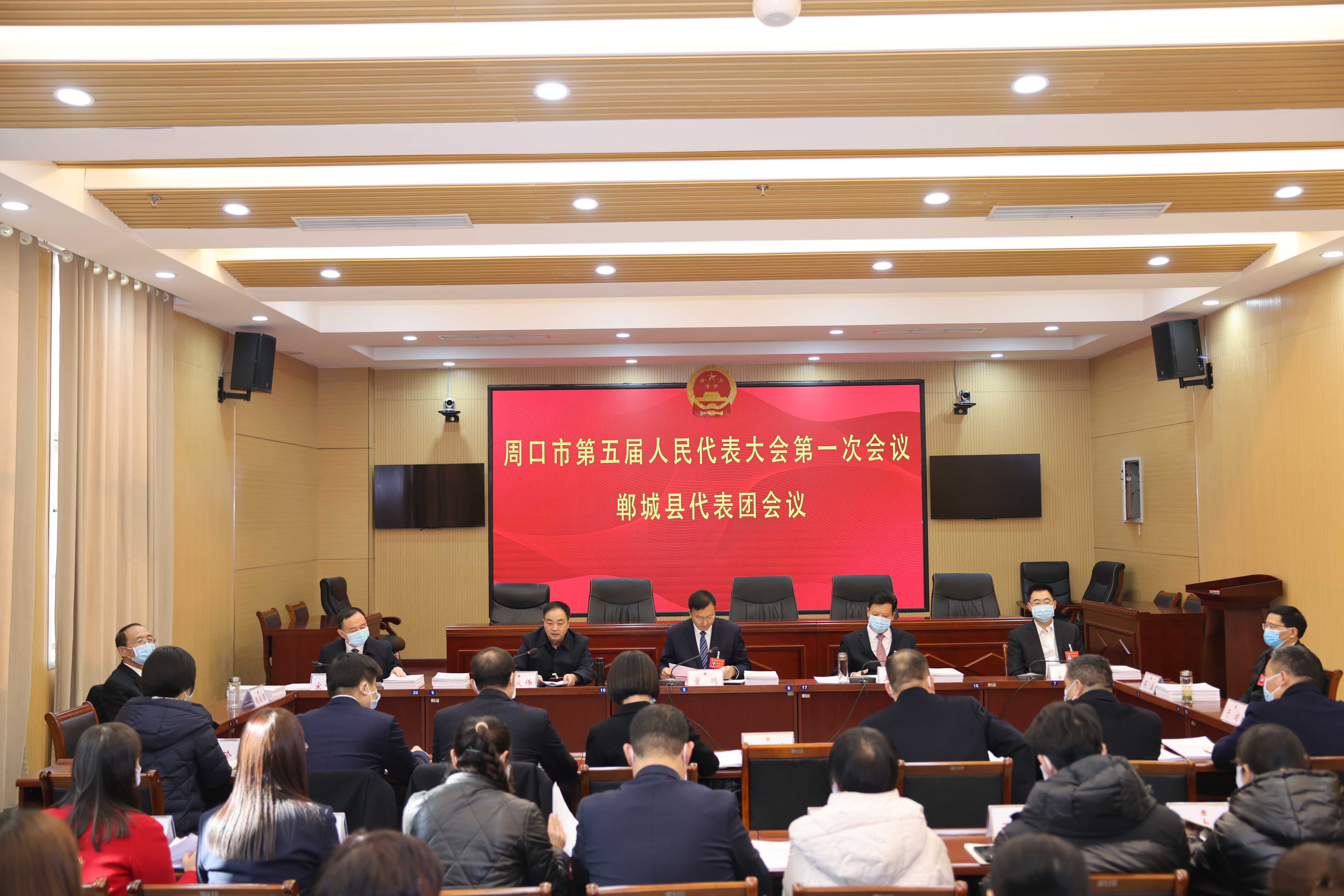 1月3日上午,周口市五届人大一次会议郸城县代表团召开第一次会议,郸城县长董鸿出席会议并讲话,县领导王中红、贾庆伟、常青、宋一兵、蒋磊、周俊领、于健等参加会议。