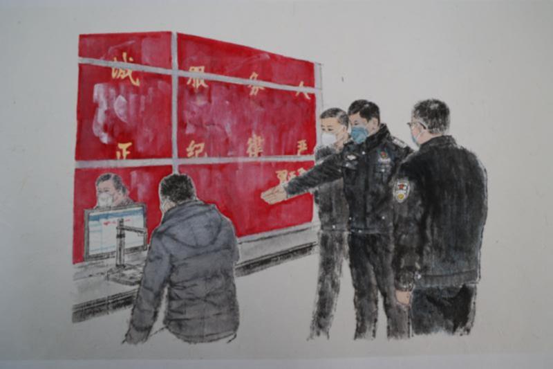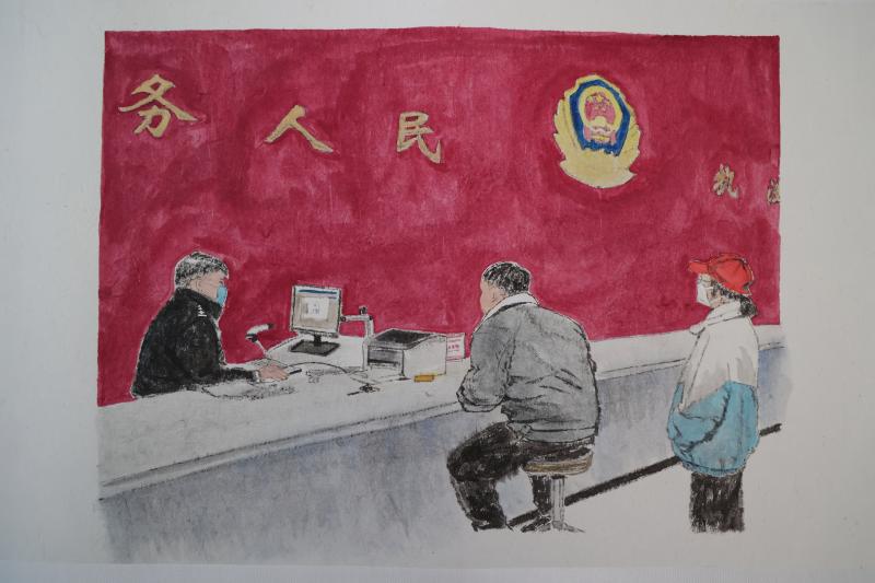 谈起创作灵感,王璐表示,随时拿出画笔记录生活日常是她一直以来的习惯。交警的工作没有惊天动地的大案,多是繁琐点滴的日常,最打动人心的莫过于这点点滴滴的小细节,服务群众体现的也就是这些细微的日常小事。从拿着喇叭喊话维持秩序的违法处理科长到亲临一线指导工作的支队领导,再到亲自帮助群众示范自助受理机操作流程的警花,交警支队每位民警都在尽己所能地为群众服务,站好一班岗,点亮万束灯。
