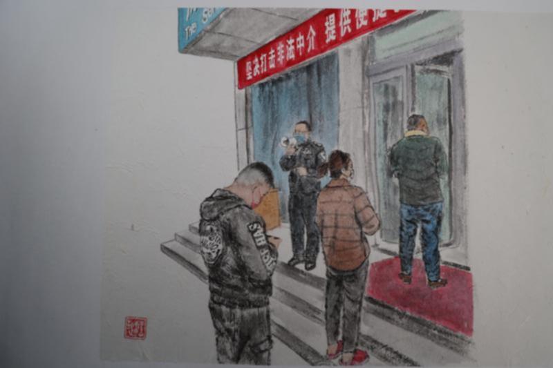 倾心为民办实事,一点一滴总关情。在第三个中国人民警察节来临之际,周口市公安局交通警察支队女民警王璐拿起画笔创作一幅幅画作,把发生在自己身边的一个个便民服务的温暖瞬间记录下来,绘制成“我为群众办实事”“民警全力助力复工复产”等为主题的系列作品,致敬警察节,见证公安民警对人民群众的热爱和对公安事业的无限忠诚。