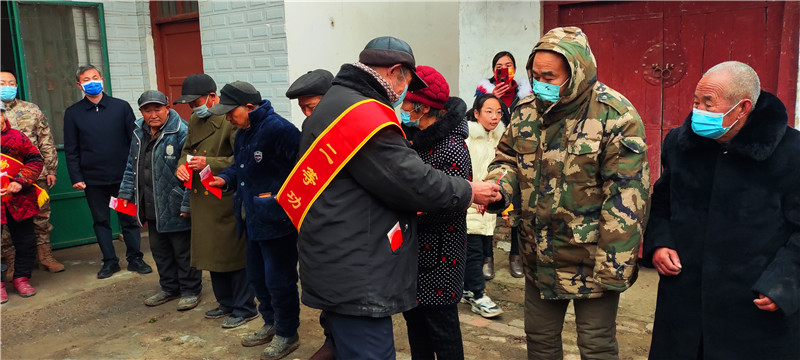 在欢快的鼓乐声中,淮阳区委常委、区人武部政委刘锋,副区长段祥灵,区退役军人事务局,齐老乡等相关人员一行10余人,来到该村现役军人张保健家中,为其家人送来了张保健的二等功喜报、5000元立功慰问金及慰问品。根据张保健的意愿,其家人把该5000元立功慰问金分成10个红包,现场分发给本村10个困难家庭。张保健的爱心善举赢得了广大村民的阵阵掌声。