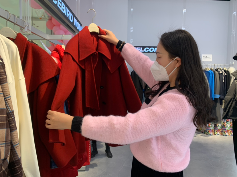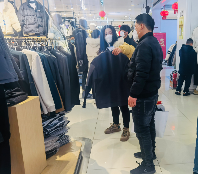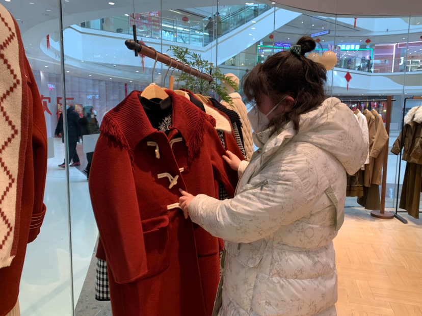 在新大新百货商场,正提着大包小包逛商场的刘女士说,2023年是她儿子的本命年,所以来给他买一套红衣服,欢欢喜喜过个年。她还给老公买了件外套算是过年新衣,接下来就是给自己挑几件衣服了。“我一直坚持在实体店里买衣服,没见过没试过的衣服不敢买回家。”刘女士说。