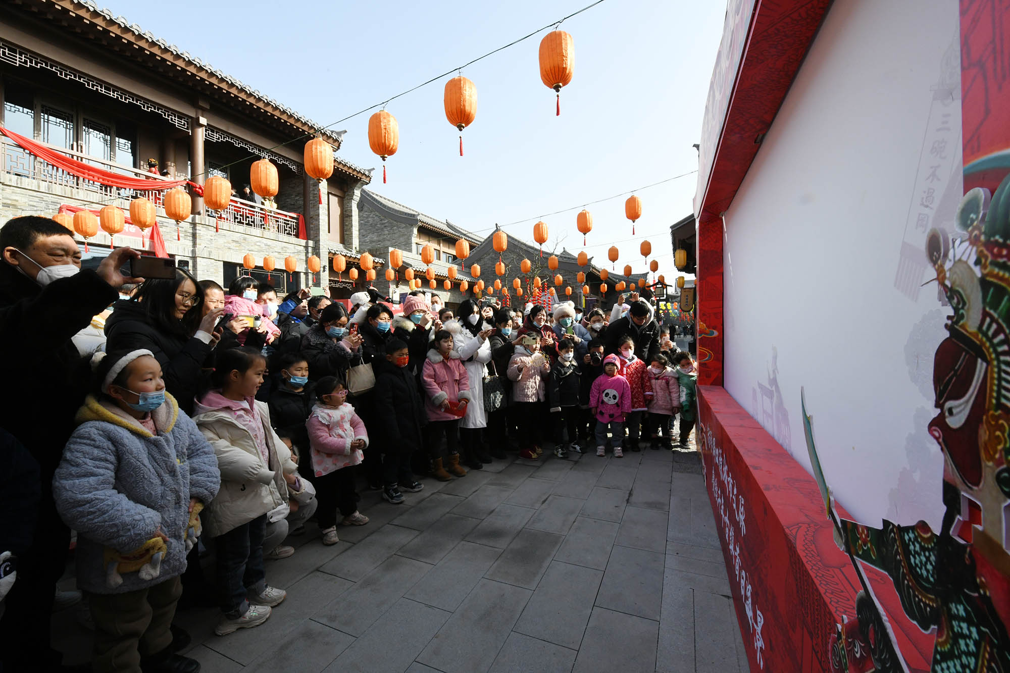 游览的市民们观看皮影戏