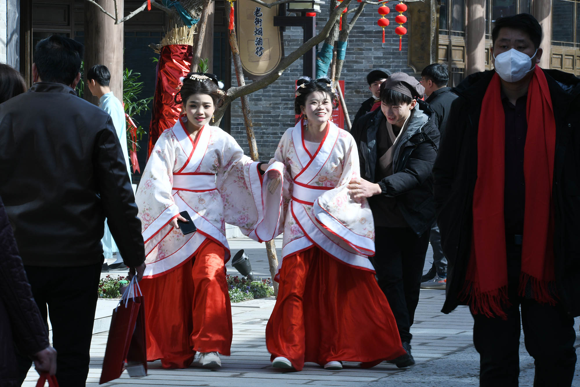人们走在古色古香的关帝老街感受文化魅力