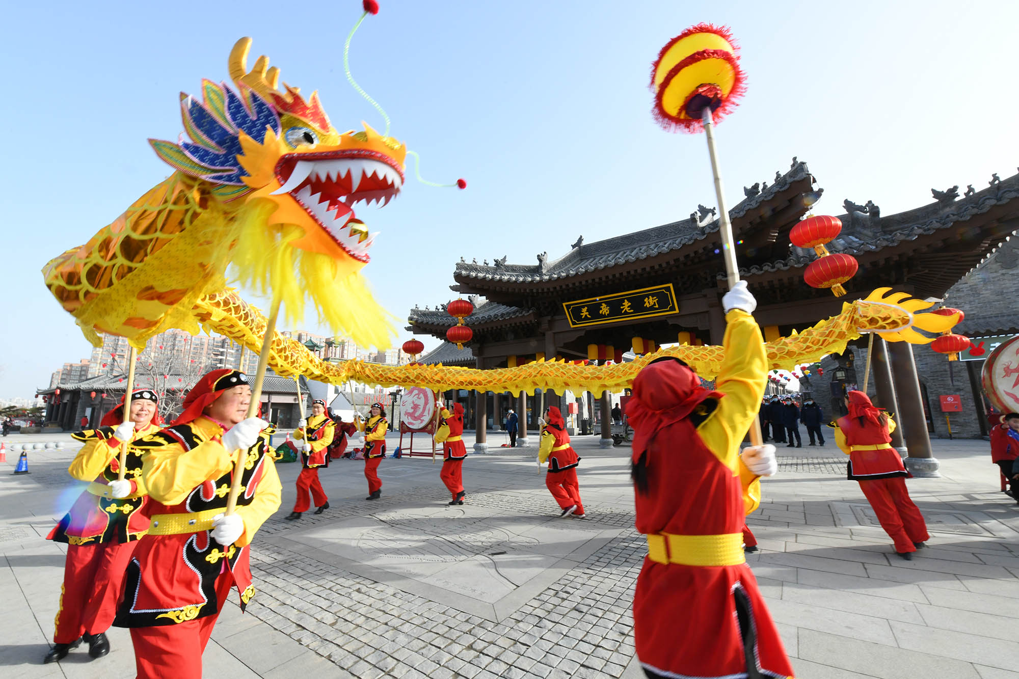 关帝老街前的舞龙表演