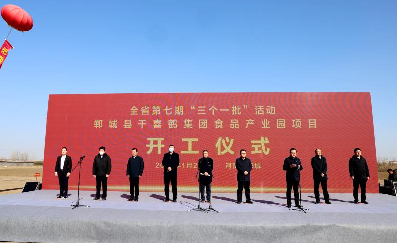 开局即决战、起步即冲刺。1月28日,春节后上班第一天,郸城县认真收看聆听全省第七期“三个一批”项目建设活动视频会议,并与全省同步举行第七期“三个一批”项目建设活动暨郸城县千喜鹤食品产业园项目等15个项目开工仪式。全国政协委员、全国工商联常委、河北省总商会副会长、千喜鹤集团董事长刘延云出席并为项目培土奠基,郸城县委书记李全林下达开工令,县领导董鸿、宋一兵、韩卫东、周俊领、张振新、张剑飞等参加。
