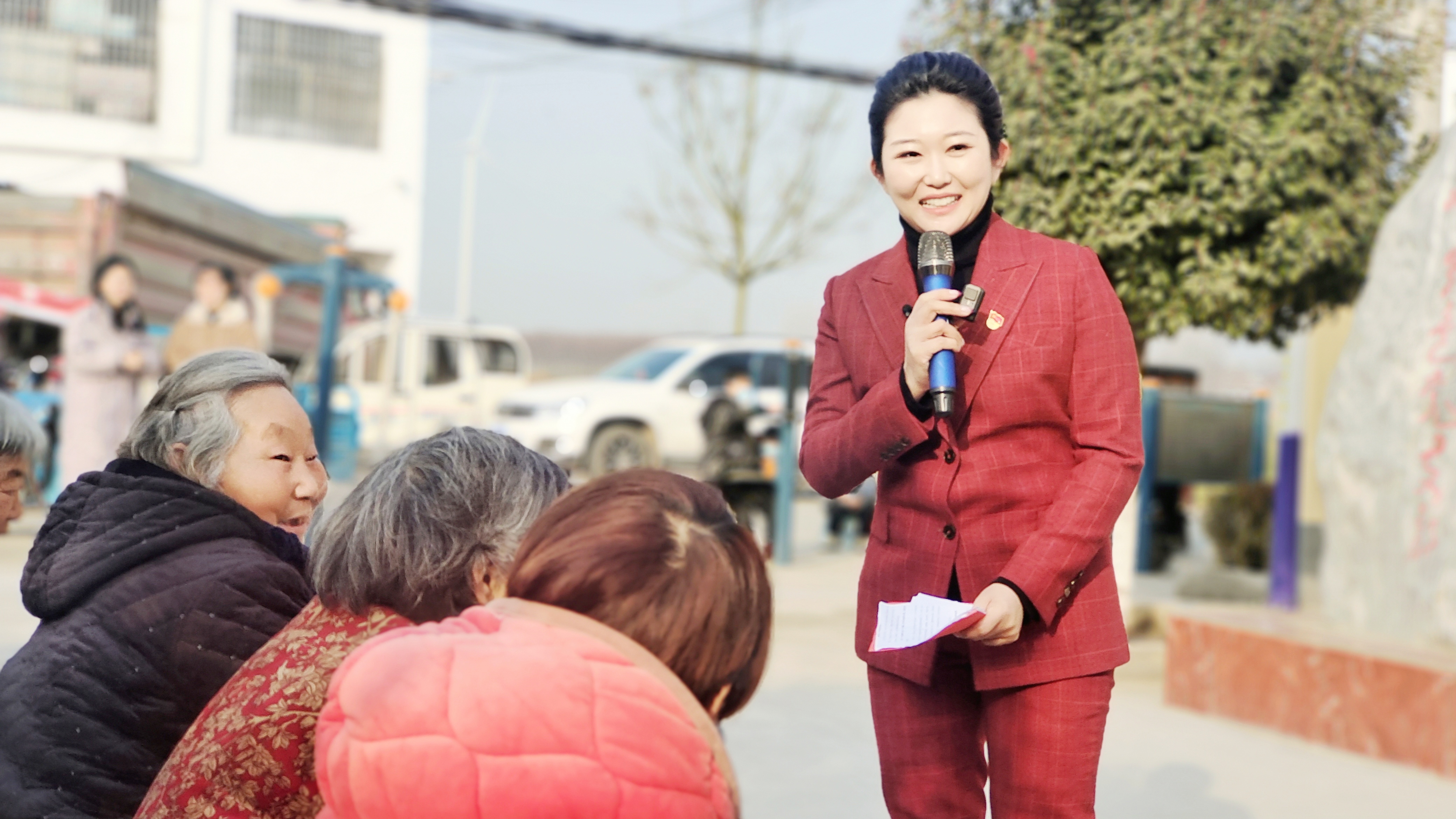 和群众讲完水牛刘村的红色革命历史后,祝昀莎又向群众宣讲了新时代项城优秀共产党员和优秀青年儿女的感人故事。