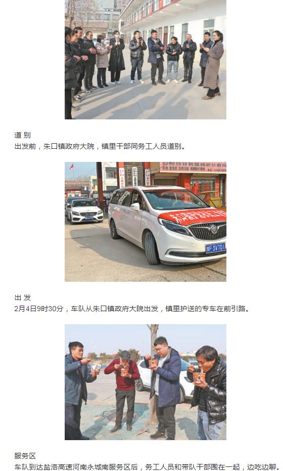 2月4日一大早,6辆浙G牌照的私家车齐聚到朱口镇政府大院。车主们的老家都在太康农村,常年在浙江务工,经过多年辛勤努力,买上了小轿车,年前开车回乡。如今,在朱口镇党委和政府组织下,15名农民工和8名家属会聚一处,自驾返程,路上也能相互照应。