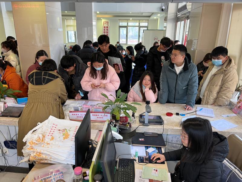 2月15日,记者从市城乡一体化示范区民政和退役军人事务局婚姻登记处了解到,今年首个结婚登记高峰日出现在2月14日,当日,该婚姻登记处共办理结婚登记38对,补发结婚登记5对。