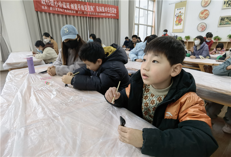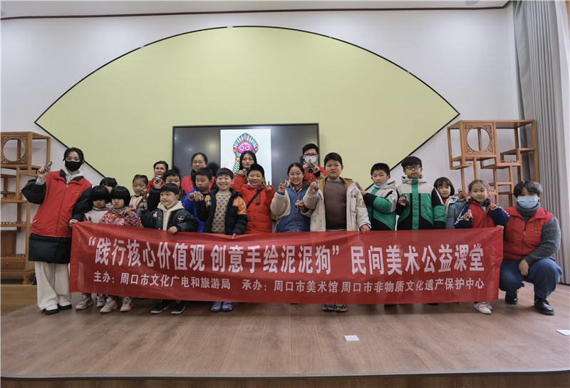为弘扬优秀传统文化,传承民间工艺美术,感受国家级非物质文化遗产——淮阳泥泥狗的独特魅力,2月18日上午,由周口市文化广电和旅游局主办,周口市美术馆、周口市非物质文化遗产保护中心承办的“践行社会主义核心价值观 创意手绘泥泥狗”民间美术研学公益课堂成功举办。