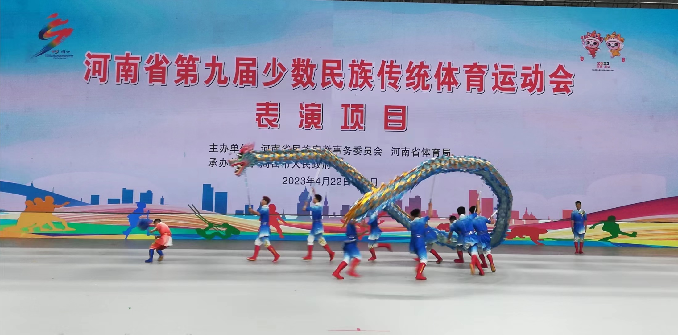 4月24日下午,河南省第九届少数民族传统体育运动会表演项目比赛在周口市体育馆完美收官。本届运动会共有14个表演项目获一等奖。