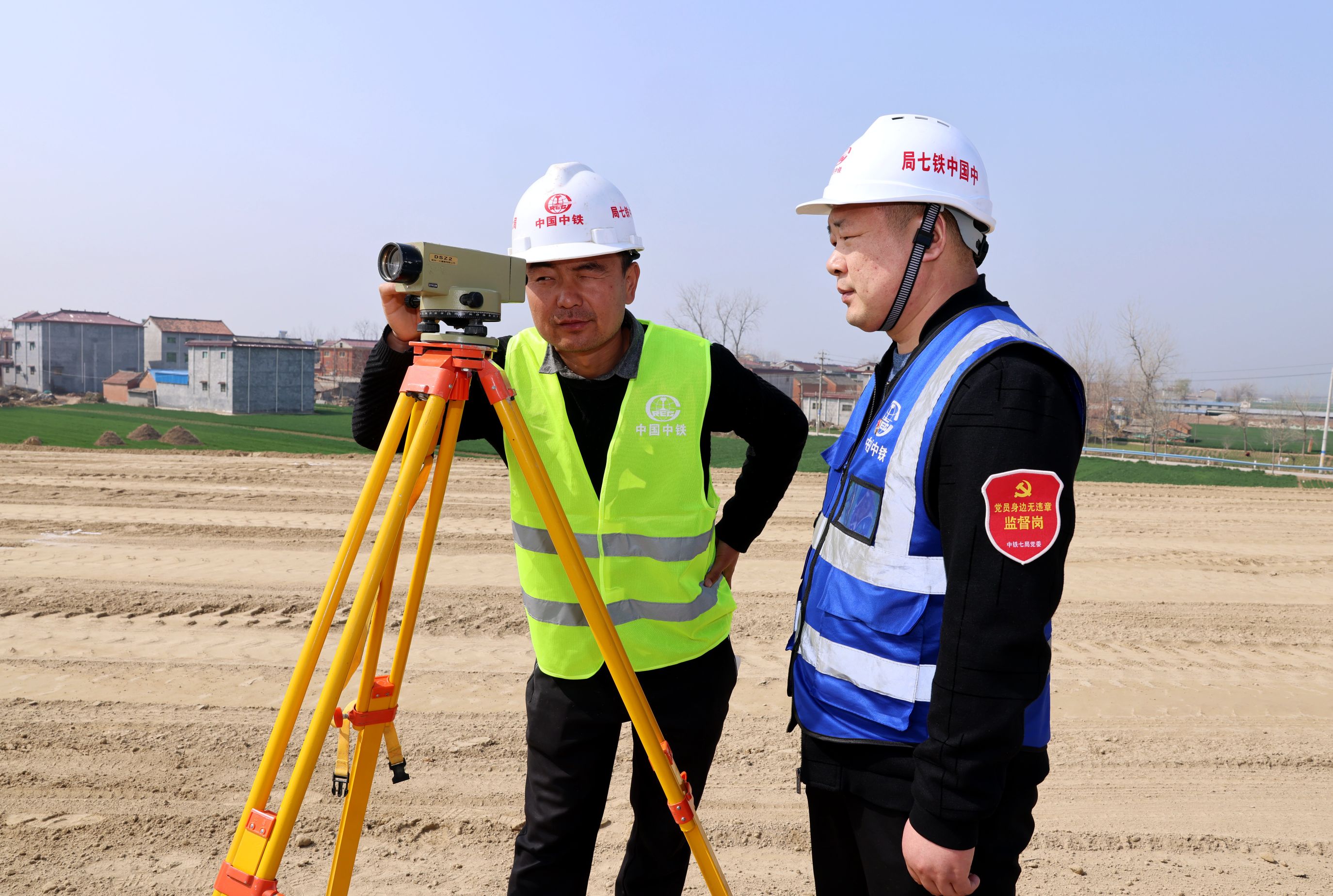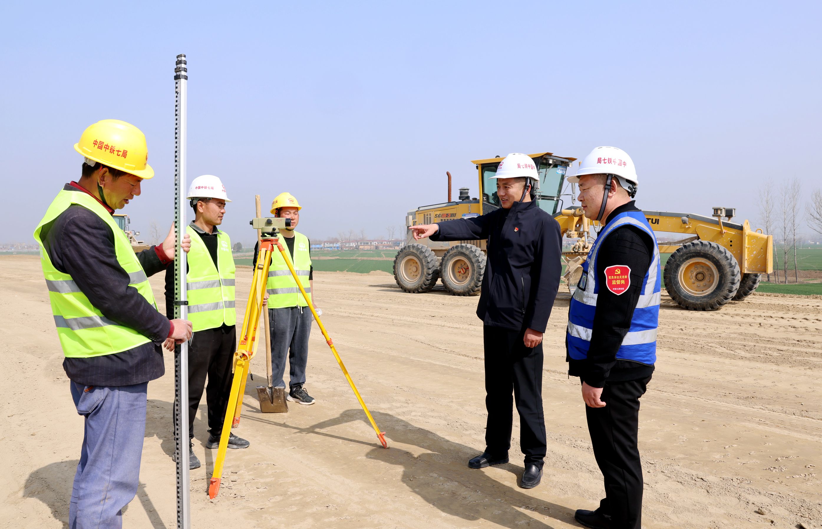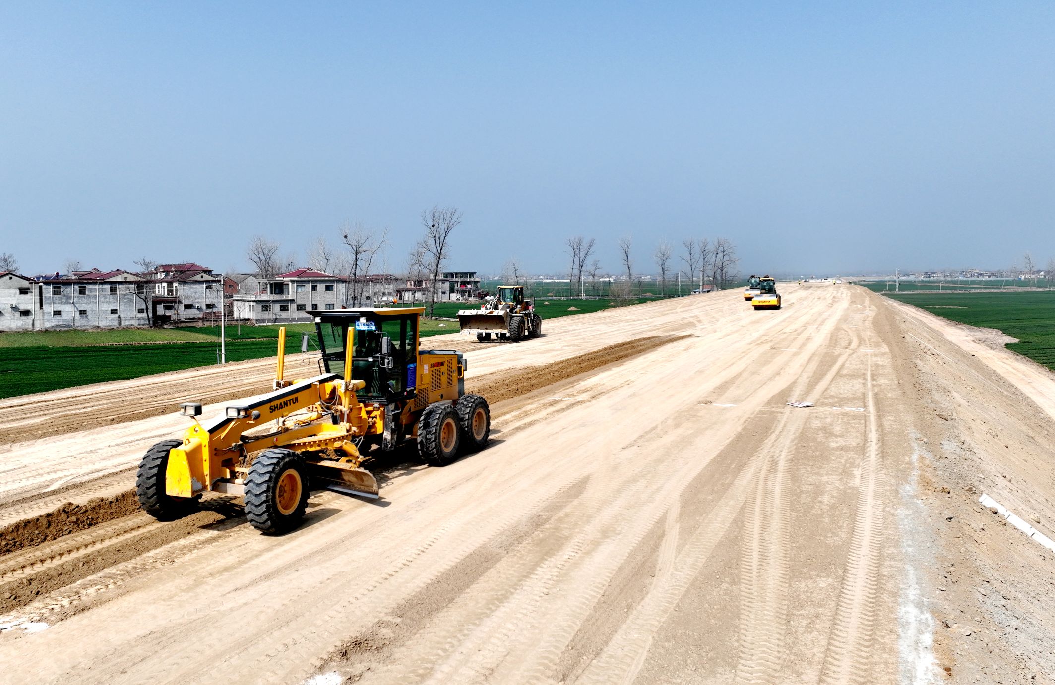 “报告总工!阳新高速K130+666-K131+100段路基精平完成,全部达到设计指标要求,路基100%完工。”3月5日,河南濮阳至湖北阳新高速公路宁陵至沈丘段(周口境)郸城县钱店镇杨寨行政村附近的施工现场,中铁七局南京公司阳新项目部路基班班长焦海平头戴黄色安全帽、左手持对讲机、右手调校水准仪测试后向总工程师李元帅报告现场情况。这标志着郸城县首条高速全面进入路面施工阶段,计划9月30日全线完工,达到通车标准。