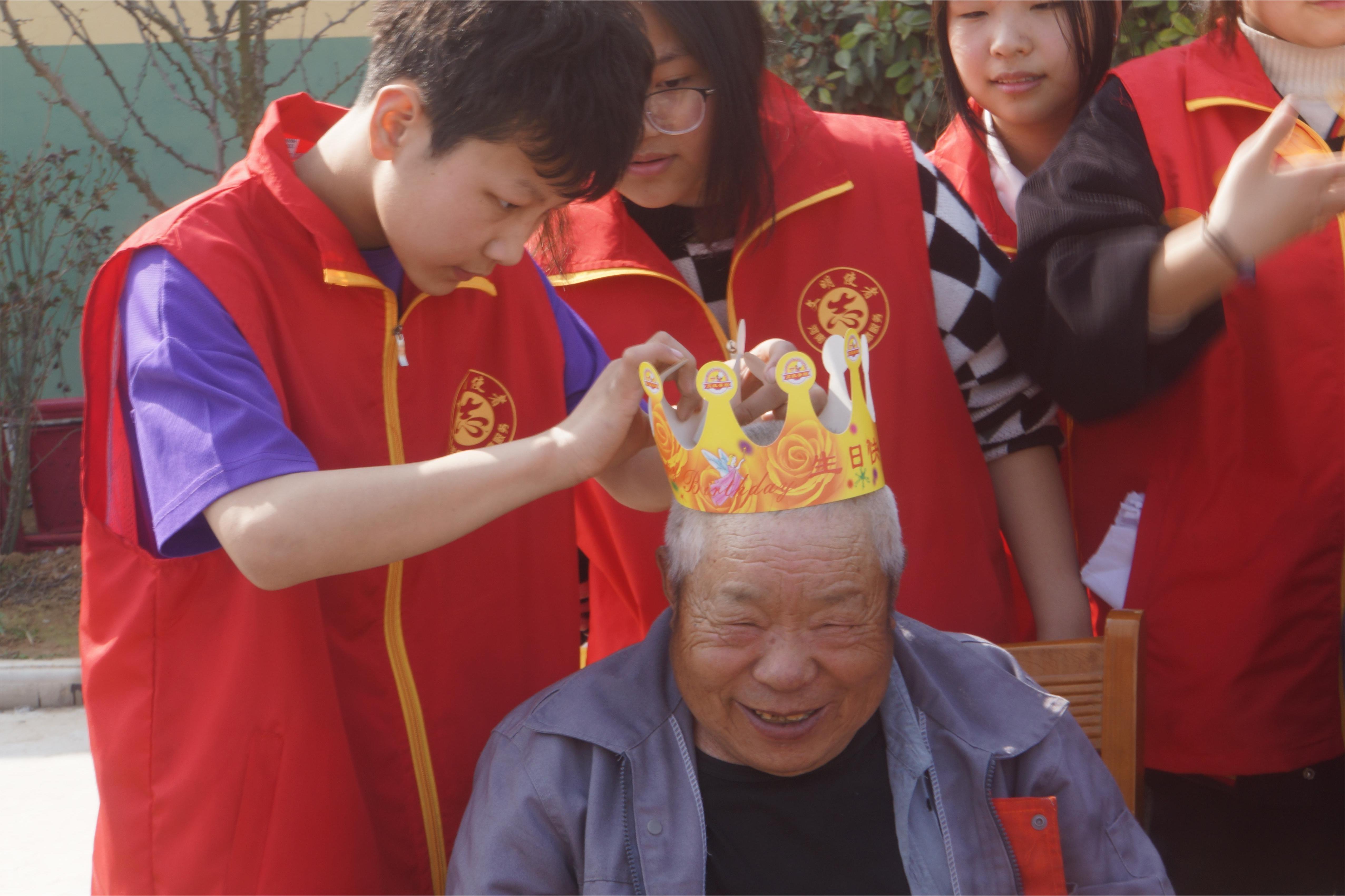 当全场响起生日祝福歌时,老人们围坐在一起,志愿者们上前为生日的老人们戴上生日帽,分发蛋糕及长寿面。在悠扬的歌声中,老人们开心地接过蛋糕,细细品尝生日的快乐。随后,志愿者们纷纷来到了老人们的宿舍,为老人们整理床铺、收拾房间。