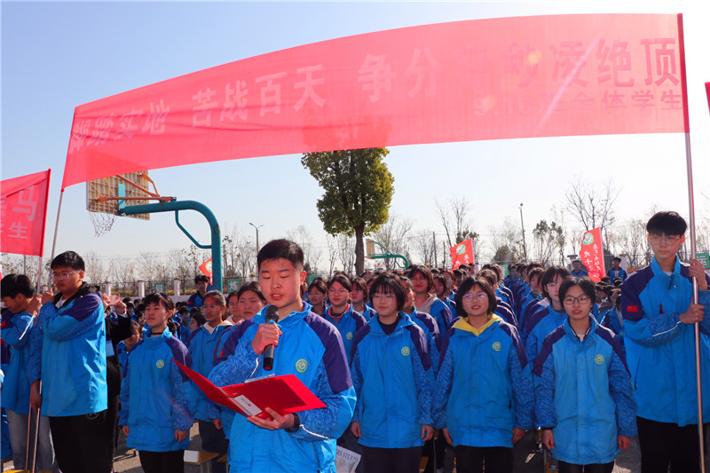 之后,在九年级阶段长领誓下,学校领导班子和全体九年级老师举旗呐喊。九年级学生进行宣誓,他们依次振臂高呼百日誓词,铮铮誓言,激情澎湃,铿锵有力,振奋人心。