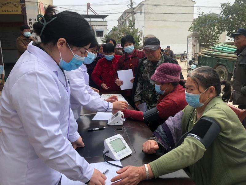 3 月20日,三川社工邀请周口港区医院(周口烧伤医院)10余名医生在扶沟县柴岗乡支亭行政村和西营行政村进行现场义诊,为村民进行量血压、测血糖、彩超、心电图、病情分析及建议和登记等服务。周口港区医院妇产科周金梅主任为两个行政村的女性进行春季养生知识普及、女性保健等方面知识,提醒她们要养成良好的卫生习惯,保持健康的生活方式。