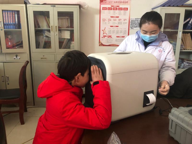 3月19日,在扶沟县柴岗乡袁楼行政村委、朱岗行政村委,周口市眼科医院为“一老一小”进行眼科检查。医生对村民先进行视力测试,再利用专业仪器为老年人、儿童进行眼科检查和诊断。检查过程中,医生详细询问了他们的日常眼部感受,并结合检测结果对老人眼部情况进行认真反馈。对于提出的疑问,医生们耐心解答。李奶奶说:“很早就发现自己眼睛看东西模模糊糊,由于年纪大行动不便,一直没去医院检查,这次在家门口就能检查了。”