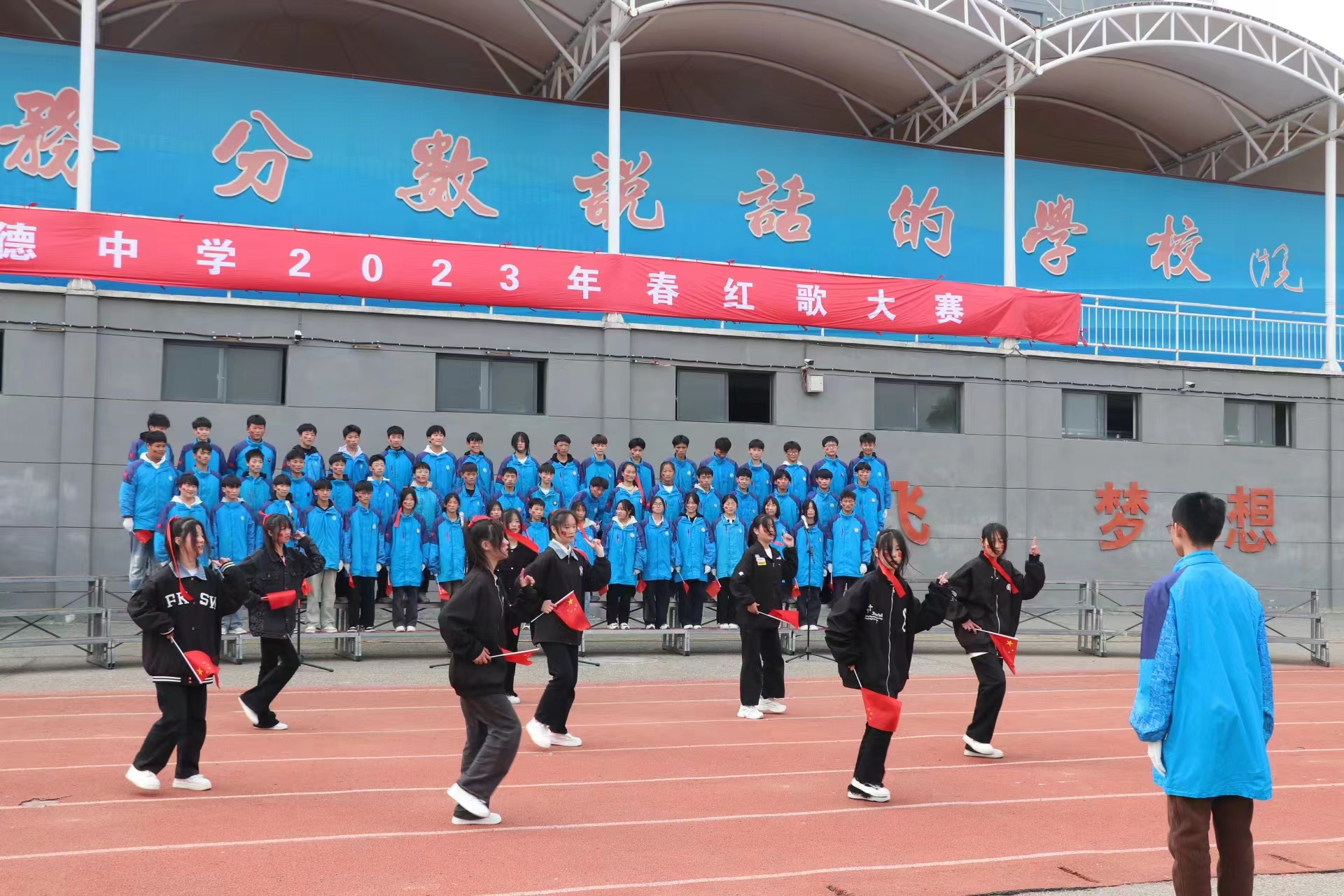 此次合唱比赛以八年级学生为主,以班级为参赛单位,用真挚的歌声和独特的表演,在精彩演绎中展现红色经典,讴歌革命先辈不屈不挠的奋斗精神。