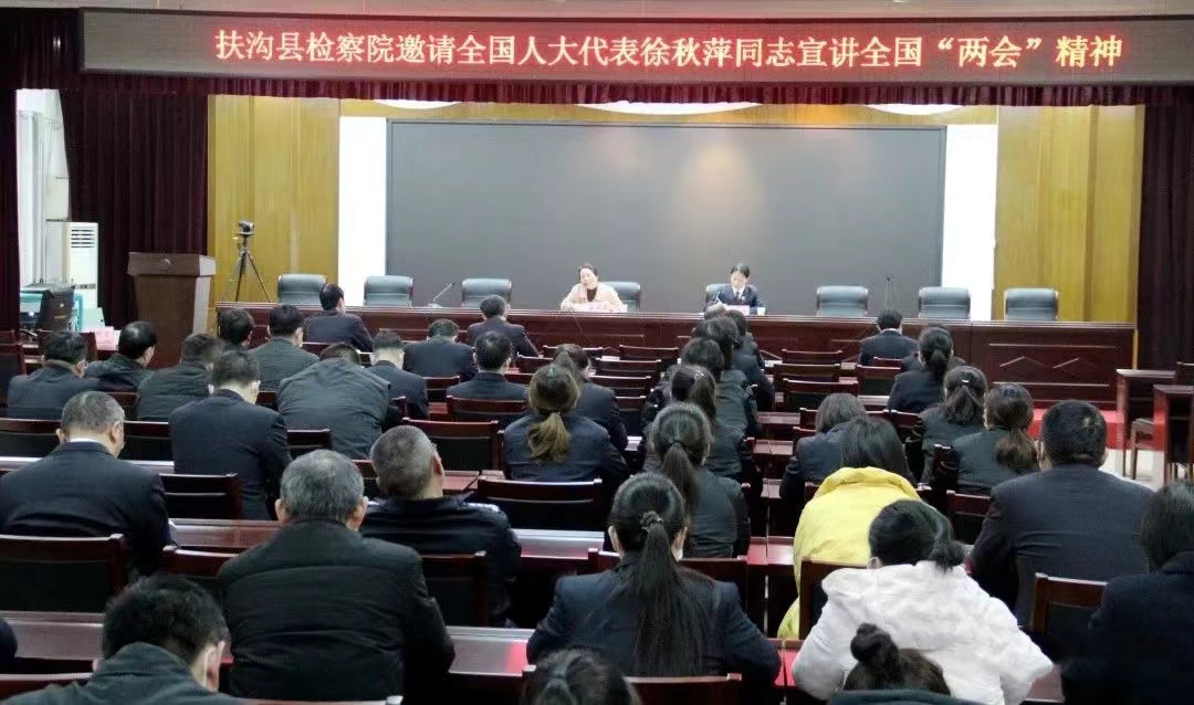 “全国两会精神鼓舞着我、激励着我,我有责任和义务把两会精神带回家乡、带给大家,当好会议的宣讲者、实践者、落实者。”为深入学习贯彻习近平总书记重要讲话和全国两会精神,深刻理解和把握精神实质,切实将全国两会精神融入检察工作,推动检察工作高质量发展,3月20日,全国人大代表、扶沟县昌茂纺织有限公司员工徐秋萍应邀来到扶沟县检察院宣讲全国两会精神。
