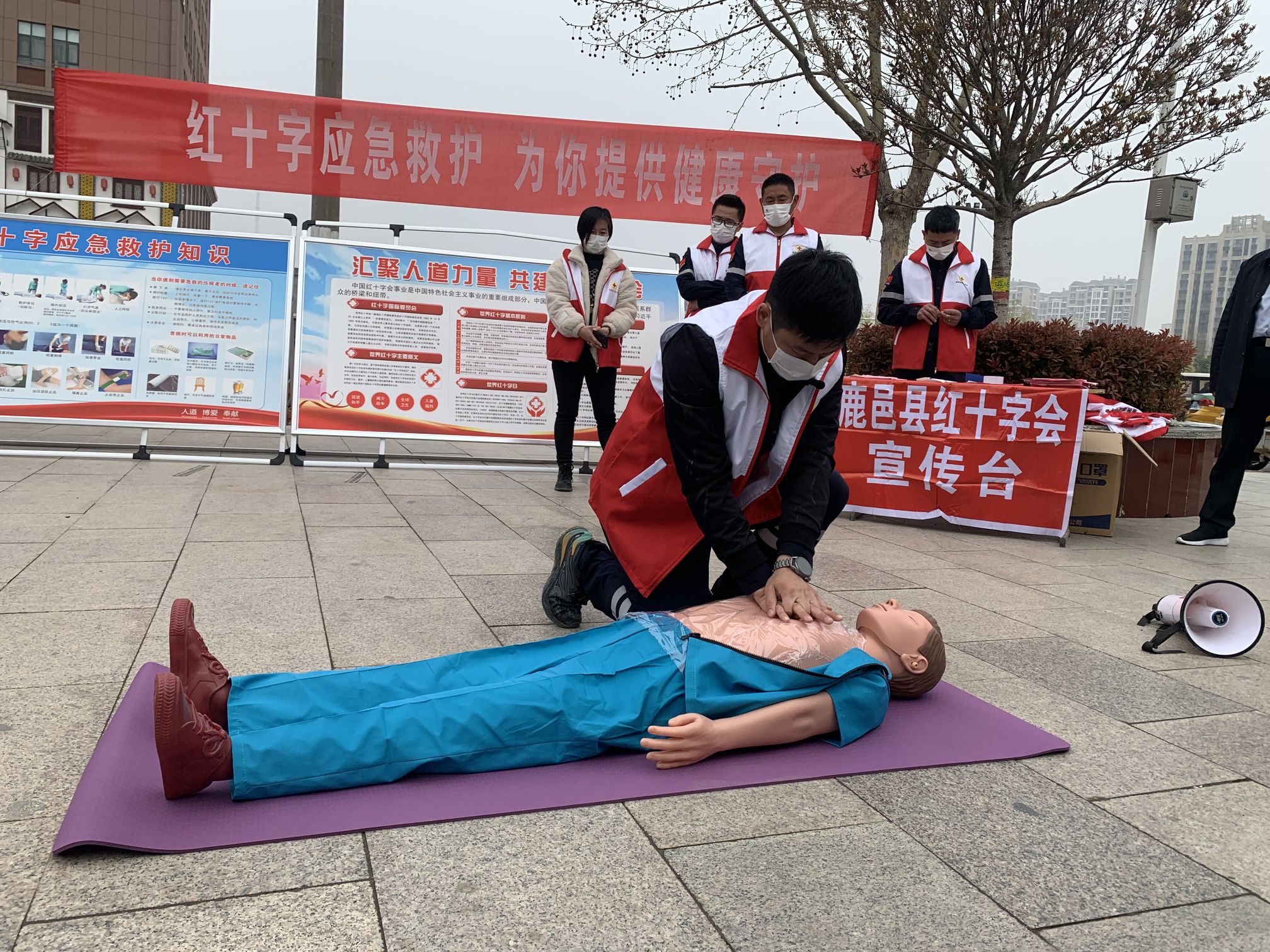 “停止呼吸要怎么抢救?”、“成人气道梗阻怎么处理?3月21日上午,鹿邑县红十字会联合县红十字金盾救援队在县城风景源广场开展“红十字应急救护,为您提供健康守护”急救培训和宣传活动,针对遇到的突发情况如何救护处理等一系列问题,为社区居民和过往群众进行应急培训。