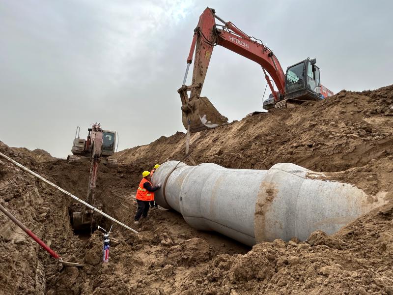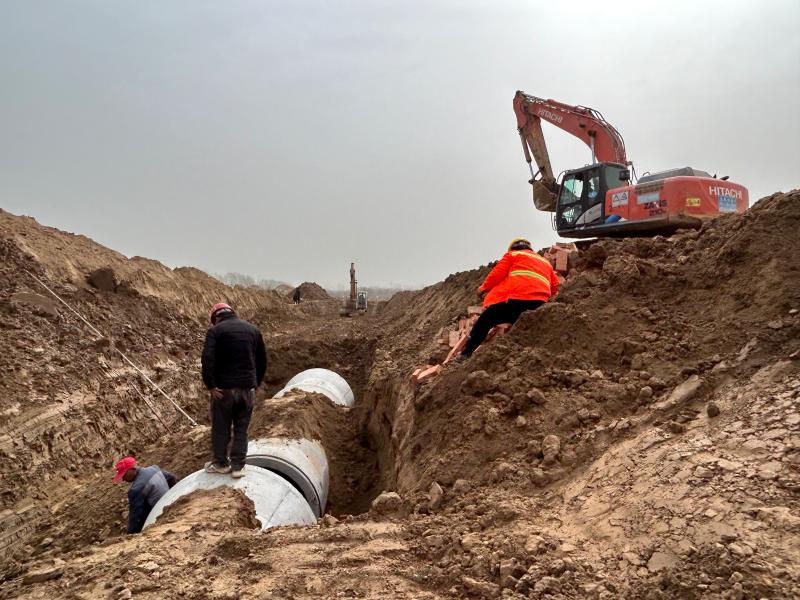 春涌风正劲,人勤拼开局。备受关注的环湖路工程一期建设正如火如荼。3月23日,记者在施工现场了解到,主线道路左侧雨污水管网已完成1.32公里,完成率75%,目前正在继续雨污水管道的安装与铺设。流沙河河北岸辅道的雨水管网安装铺设完成0.95公里,完成率100%。