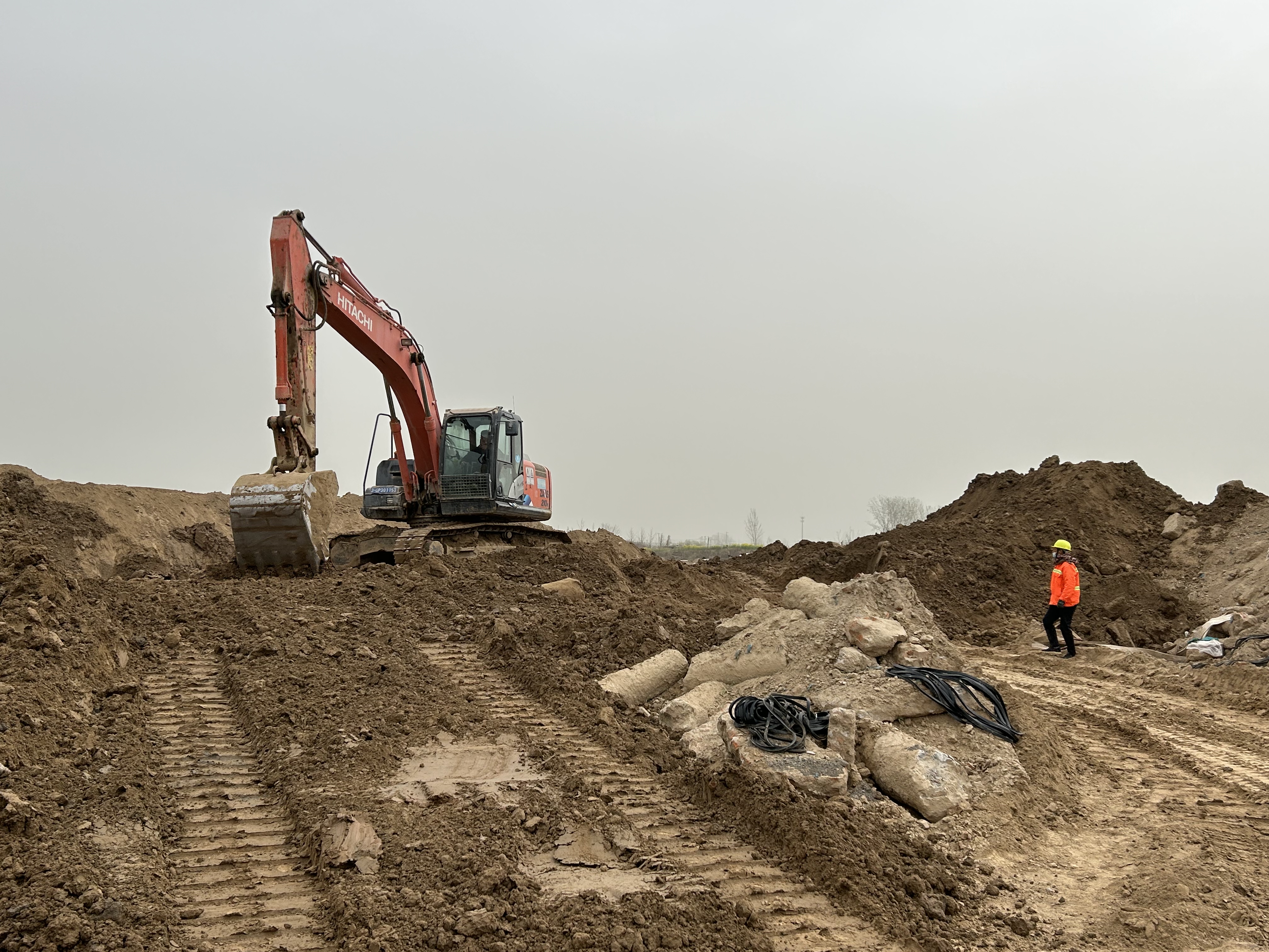 挖掘机正进行管道土方开挖作业