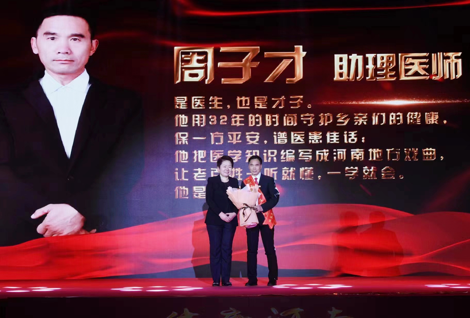 3月24日,由河南省卫健委、河南日报报业集团主办,大河健康报社承办的“健康河南(第四届)基层好医生评选”颁奖典礼在省会郑州举行。郸城县卫健委荣获健康河南(第四届)基层好医生评选“十佳组织单位”,张完乡村医周子才获得“十大基层好医生”荣誉称号两项大奖。