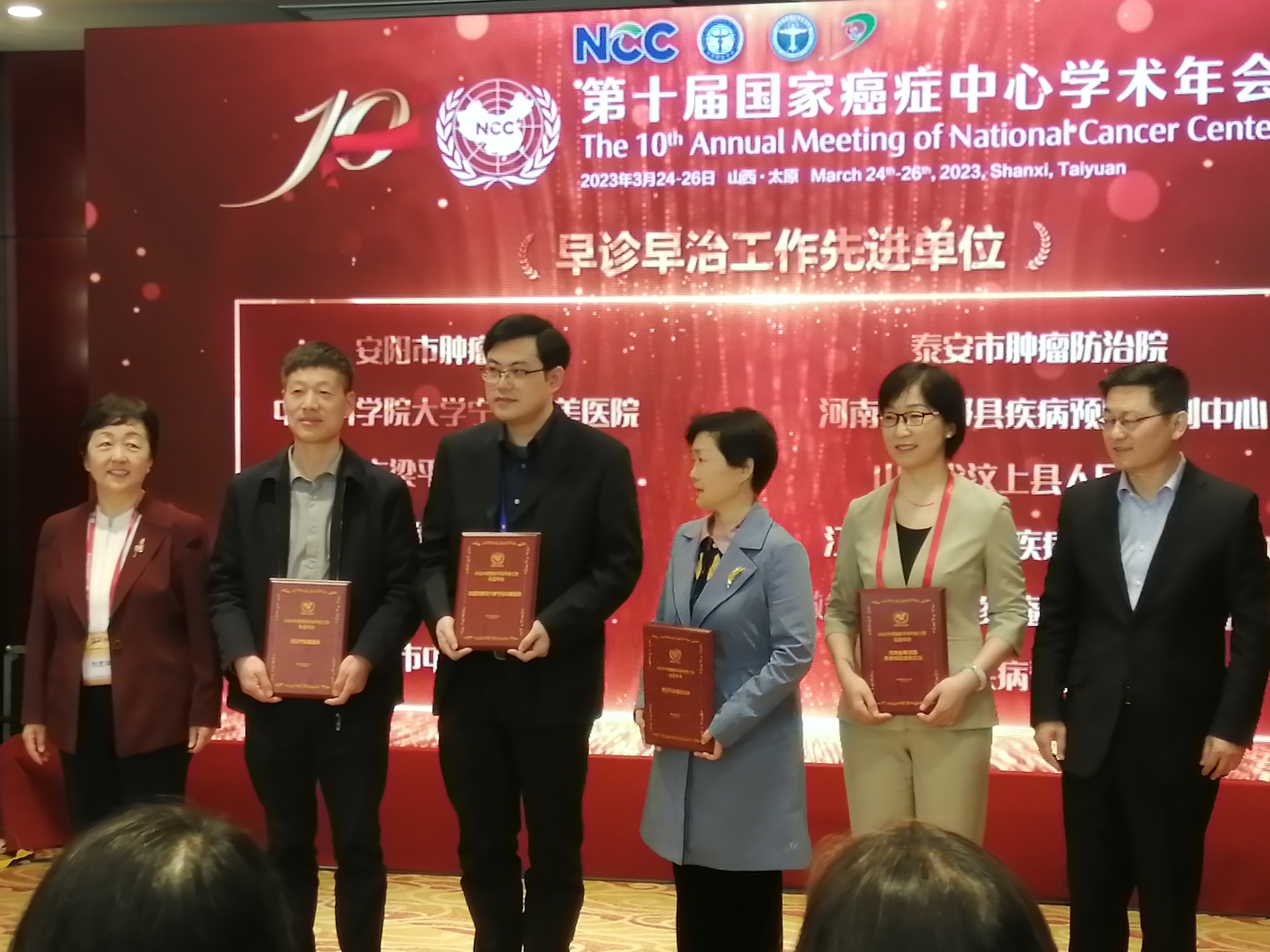 3月26日上午,全国第十届国家癌症中心学术年会在山西太原召开,郸城县荣膺2022年度全国“癌症早诊早治工作先进单位”称号,为我省唯一获此殊荣的县。同时,郸城县慢性病科科长郭德银被邀在全国癌症监测与早诊早治高峰论坛会议上作经验交流。