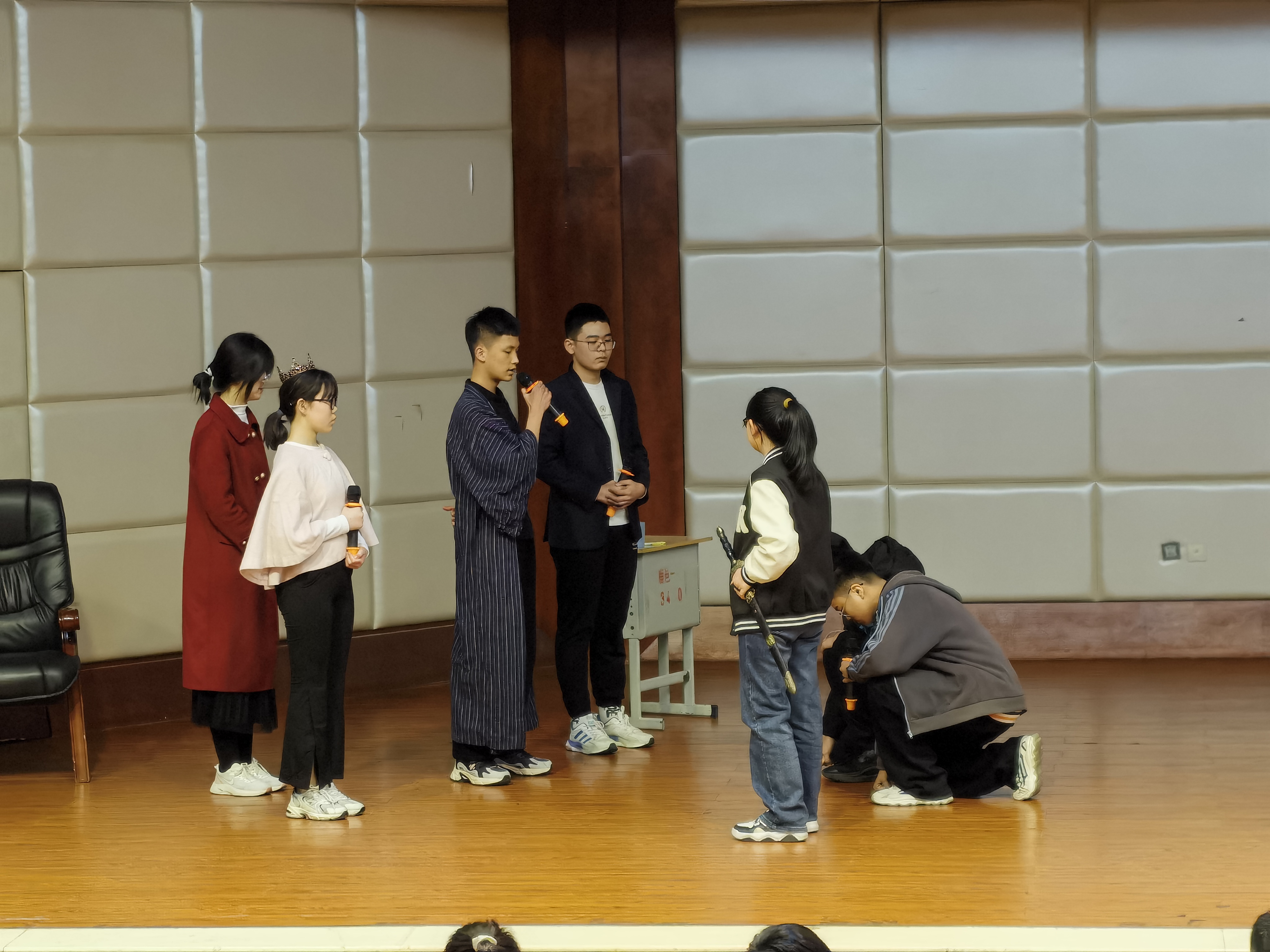 为丰富学生的课余生活,帮助学生更好地把握戏剧单元文本内容,体验戏剧情节,感受戏剧艺术魅力,提高学生审美和人文素养,营造向真、向善、向美、向上的校园文化氛围,在教师指导下,同学们用戏剧形式饰演课本中的经典篇目。