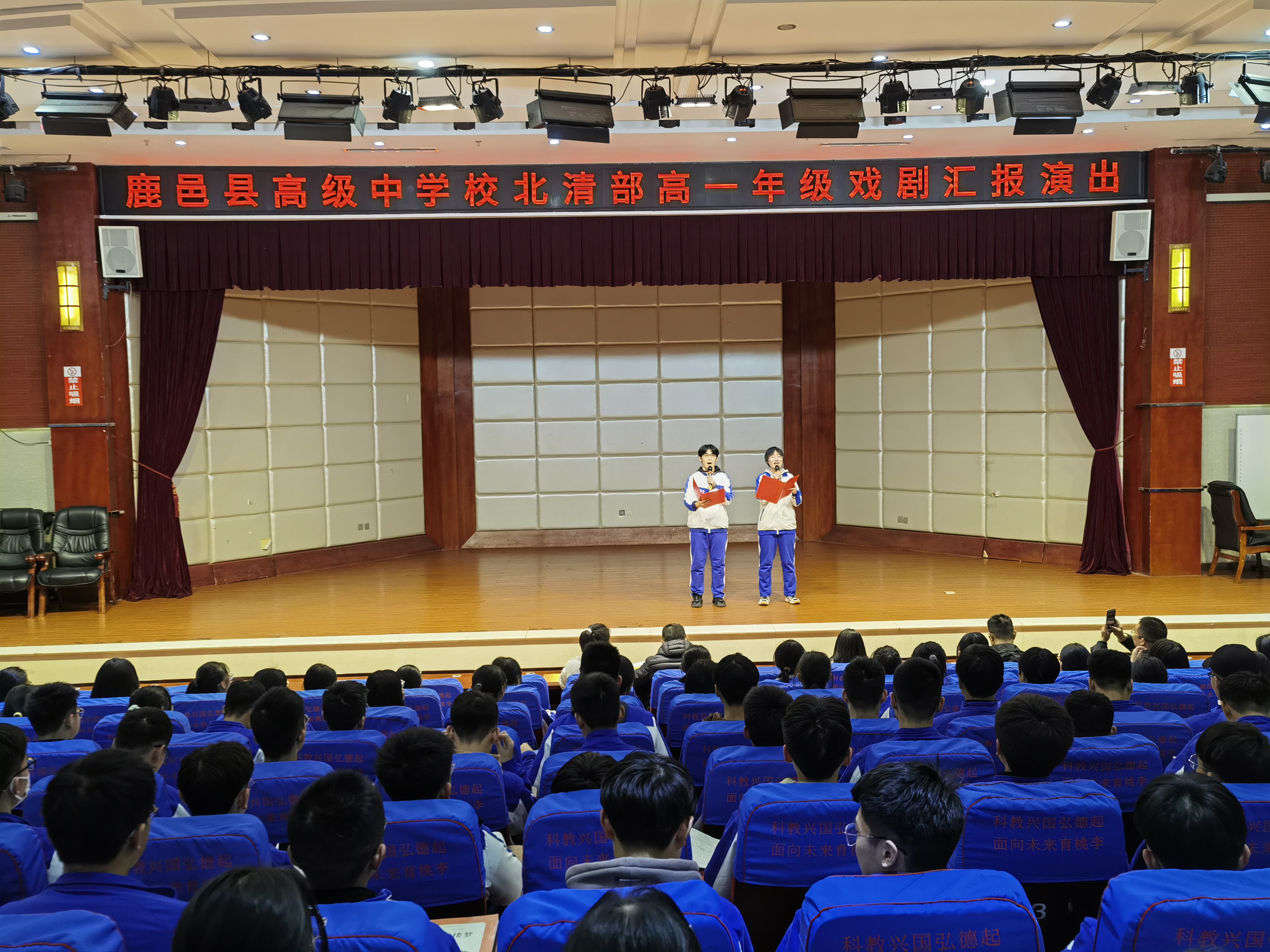 3月29日晚,鹿邑县高级中学北清部高一年级师生在学术报告厅举行戏剧汇报演出,学校副校长李勤然、北清部主任丁涛林参加活动。