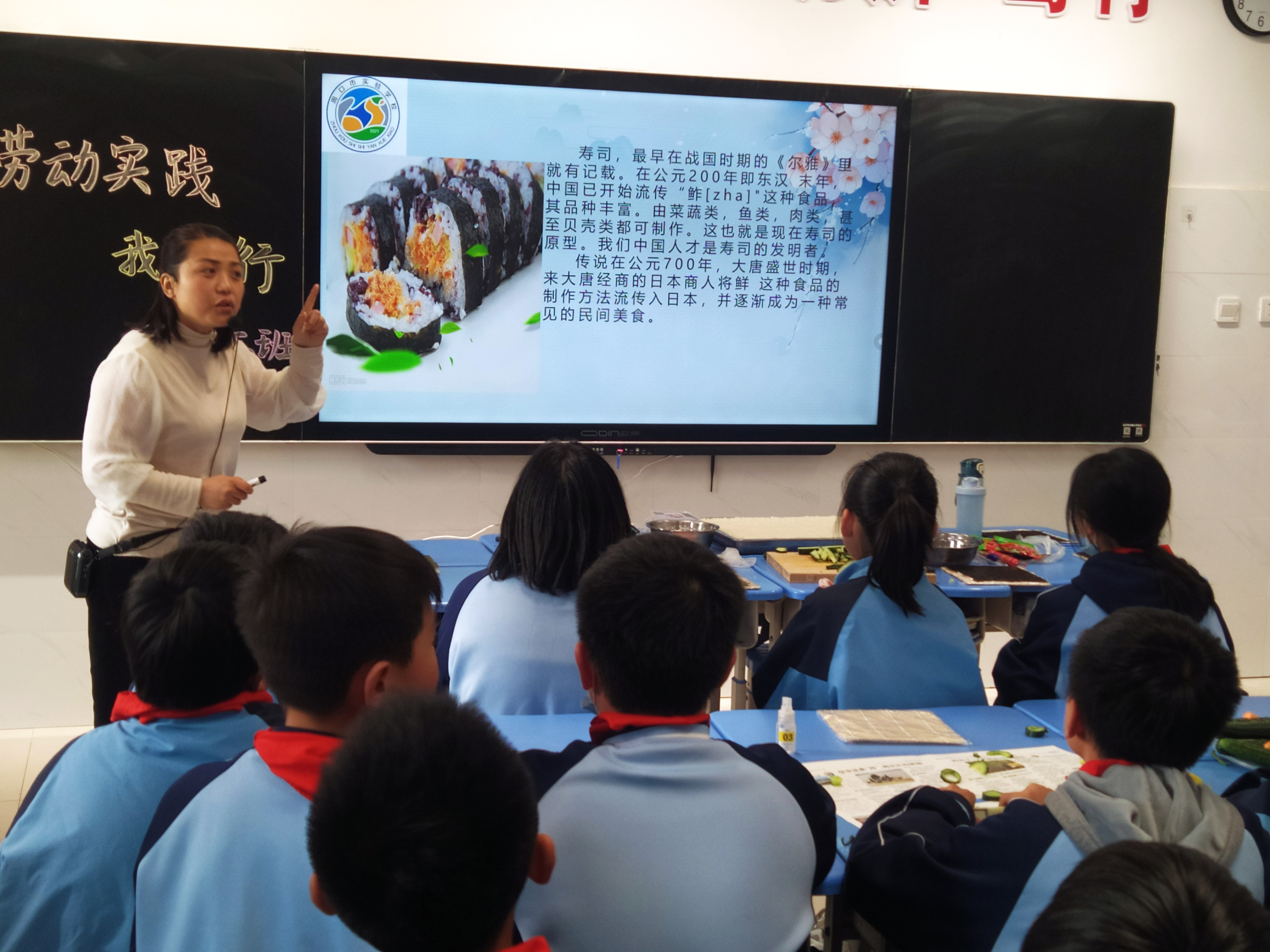 巧手做美食,劳动实践我能行。3月30日下午,周口市实验学校六年级3班的学生正在参加“巧手做寿司”实践活动,由班主任带领同学们亲自体验美食制作过程。