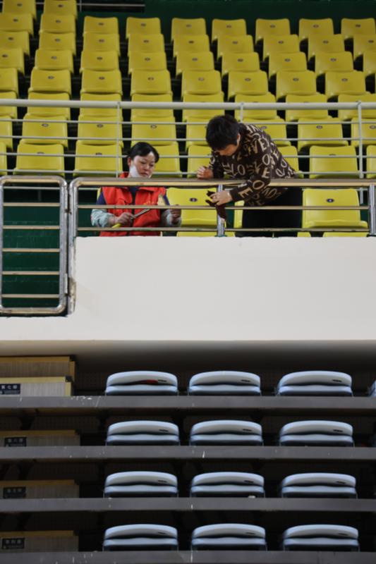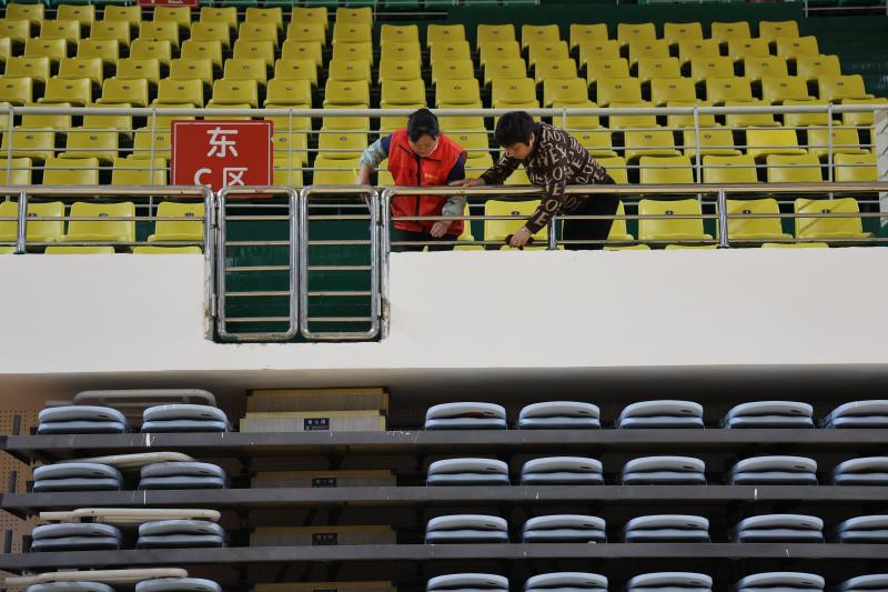 3月31日,为了第九届全省民族运动会有一个整洁、靓丽的比赛环境,志愿者正在对比赛使用场馆进行保洁。