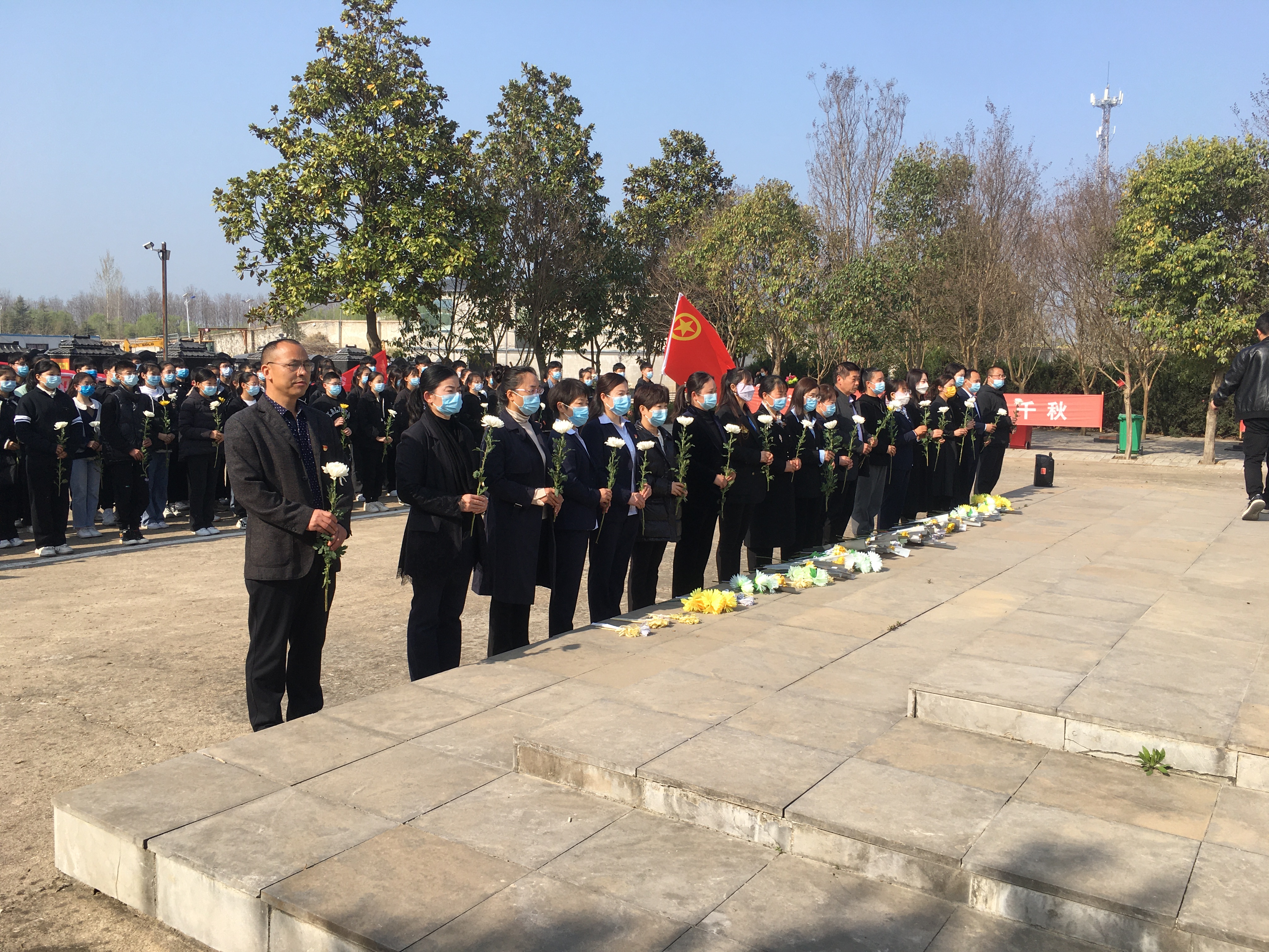 青山埋忠骨,史册载功勋。商水县烈士陵园广场,学生们排着整齐的队伍,庄严肃穆。学生代表向烈士纪念碑敬献花篮,在墓前同学们低头致哀,全体人员进行三鞠躬表达对革命烈士的深切缅怀。学生代表向革命烈士献词,该校副校长王政华向同学们讲述了烈士事迹,希望同学们能够秉承先烈遗志,弘扬英雄精神,志存高远,成长为栋梁之材。