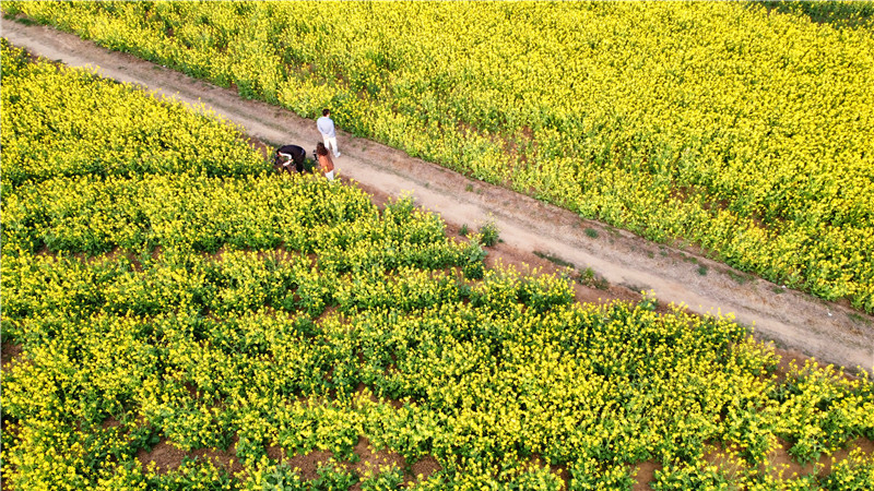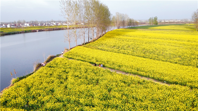 4月2日,春日明媚,沙颍河两岸一片片金灿灿的油菜花“染黄”了大地,空气中弥漫着香气,大片的油菜花和漂亮的村居、田间劳作的农民交织在一起,如诗如画,美不胜收,让人心旷神怡。作为春日大自然最美的颜色,成片的油菜花海成为旅游爱好者追逐的风景。