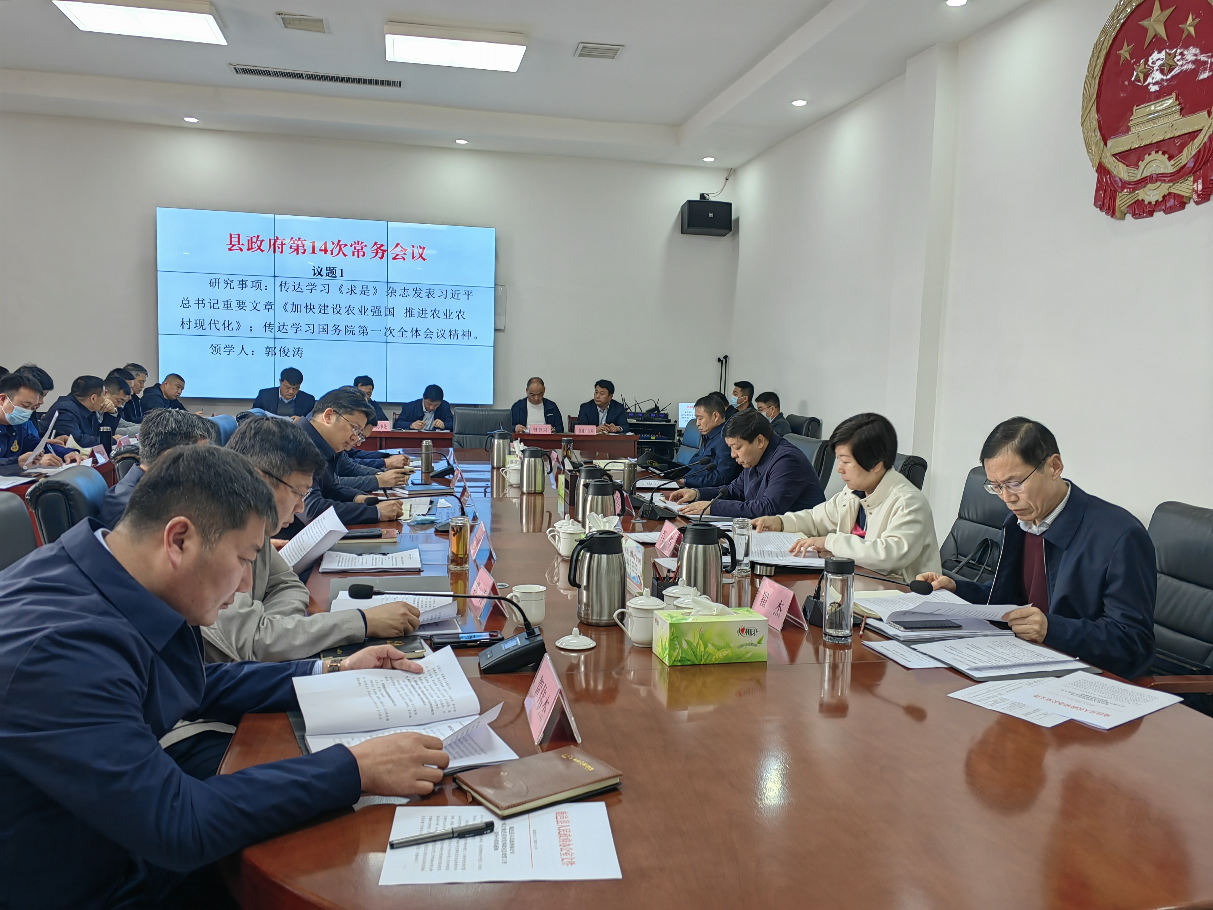 4月2日,鹿邑县委副书记、县长郭俊涛主持召开县政府第14次常务会议,传达学习《求是》杂志发表习近平总书记重要文章《加快建设农业强国推进农业农村现代化》、国务院第一次全体会议精神;集中学习《中华人民共和国反电信网络诈骗法》;安排部署当前全县重点工作。肖炜、翟杰、乔伟、顾永庆、骆威、王玉超、谷长征等县处级领导出席会议。