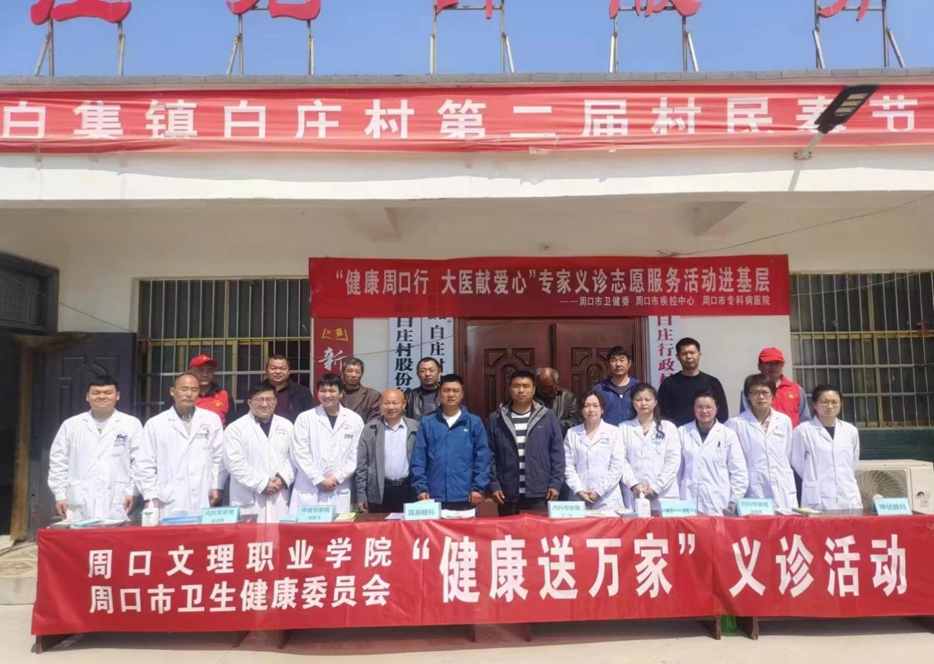 为持续推进“五星”支部创建工作,进一步提高辖区群众健康意识和自我保健能力。3月30日,周口文理职业学院联合周口市卫健委、周口市疾控中心、周口市专科病医院在沈丘县白集镇白庄行政村开展“关爱你我他、健康送万家”义诊活动。