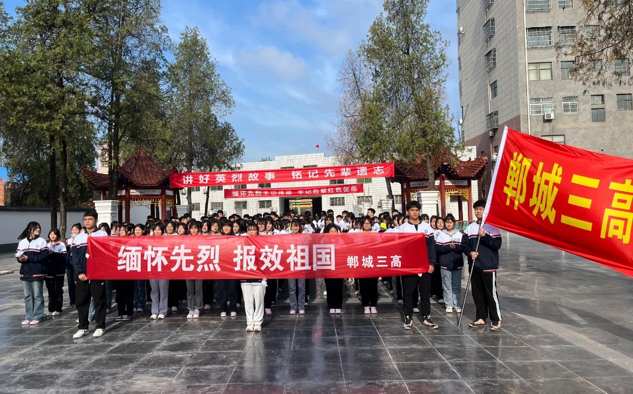 当日上午,郸城县第三高级中学为悼念革命烈士,缅怀先烈的丰功伟绩,教育学生弘扬民族精神,加强爱国主义教育,组织师生到郸城县烈士陵园开展“清明祭英烈 ”为主题的清明节祭扫活动。