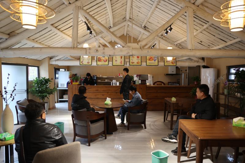 赏玩累了,游客可以在牛棚咖啡屋歇歇脚,喝上一杯浓郁的咖啡。馆舍是牛棚改装,装饰新奇、设计大胆,让人耳目一新。草料包裹的房屋中间,摆着一张张咖啡桌,桌上是精致的甜点与饮品。