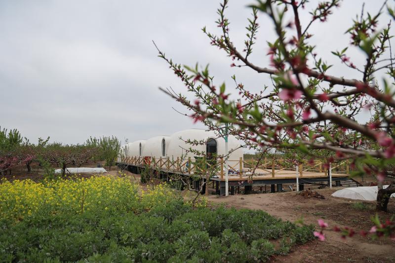 草地、桃林、民宿……这些元素一旦结合,立即让裴庄村平添了不少活力,野趣十足。