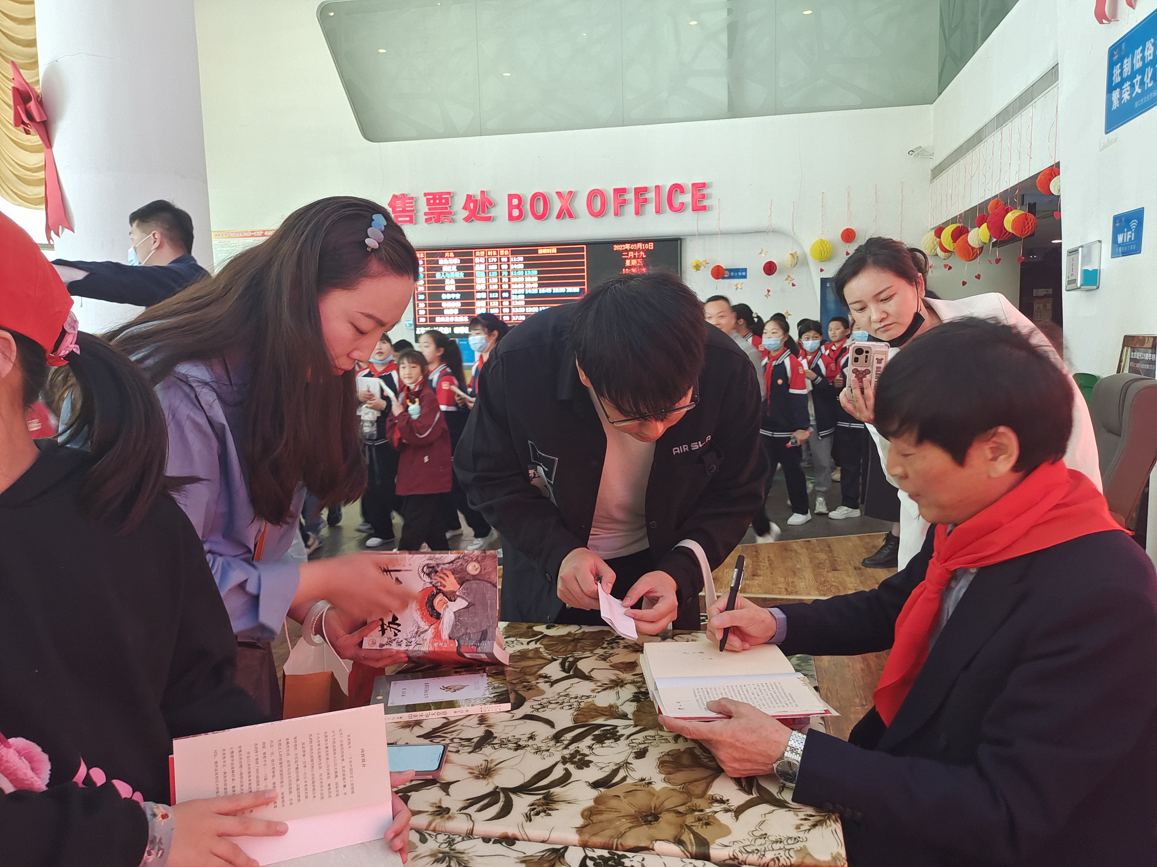 除了王跃文,来到首届河南周口伏羲书展的还有全民阅读倡导人、韬奋基金会理事长聂震宁,知名女作家安意如,著名儿童文学作家、国际安徒生奖获得者曹文轩,鲁迅文学奖获得者张莉,《人民日报》社会版主编、高考作文专家李智勇,著名儿童文学作家殷健灵……“伏羲书展的成功举办,对于进一步推进书香河南、书香周口建设,促进文旅融合发展,创新太昊伏羲祭奠活动具有重要意义。”聂震宁对伏羲书展寄予厚望。“伏羲文化广场人流量非常大,能在这里举办高规格书展很不容易,体现了一个文化大市、文化大省应有的担当。”安意如在读者见面会上竖起大拇指。周口市文昌小学的孩子们给曹文轩系上红领巾,殷健灵走进周口市青少年活动中心分享创作初心……很多名家刚听到“周口办了个书展”时很诧异:周口在哪?活动时看到精心的组织、优中选优的图书、眼神中充满期盼的读者时,他们都觉得很振奋,认为周口市委、市政府对书香社会建设的立意和重视不亚于一线城市,对这个在千年庙会旁新开办的书展点赞连连——历经磨砺,周口这座小城的基层文化事业迎来璀璨辉光。