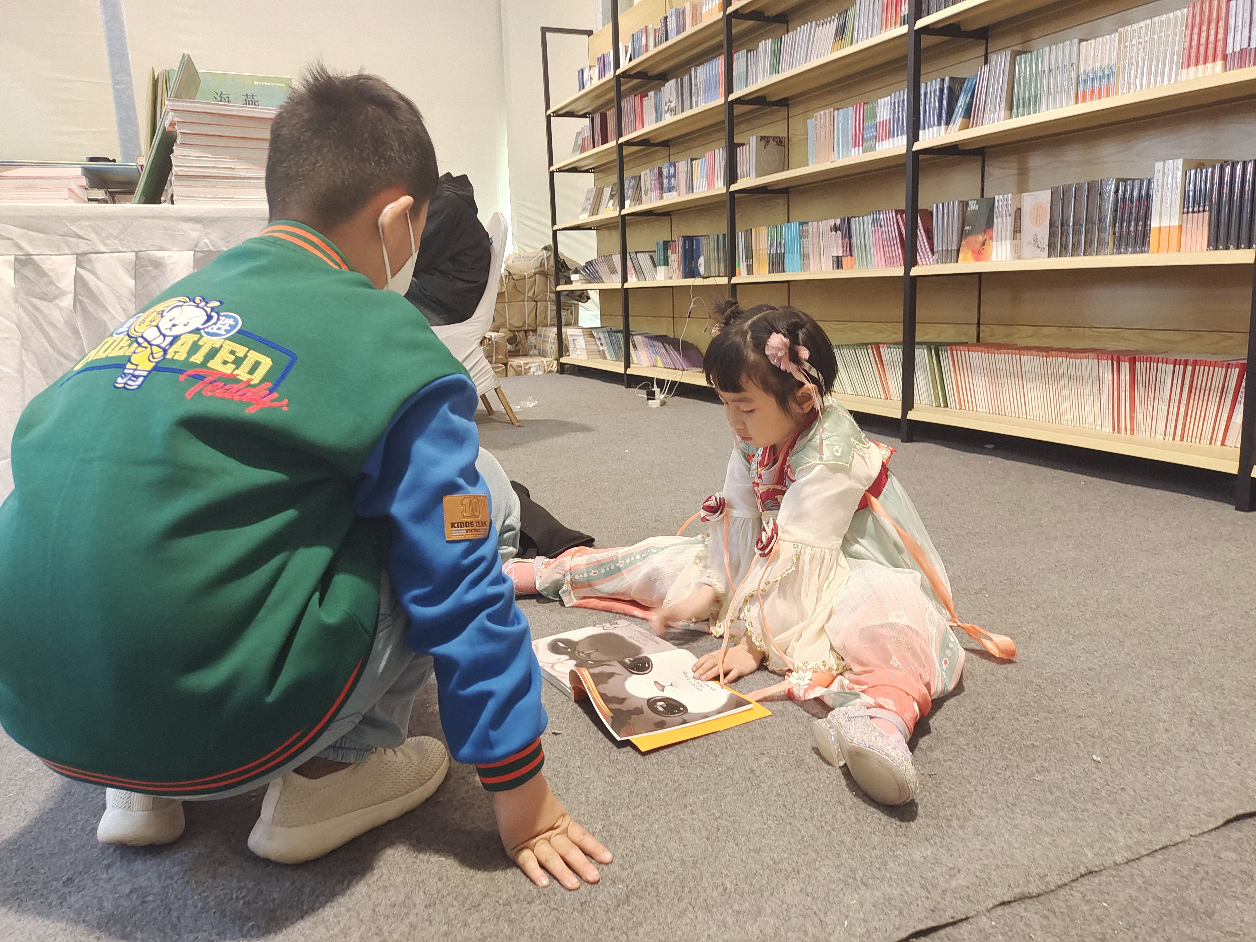 书展上认真读书的小朋友