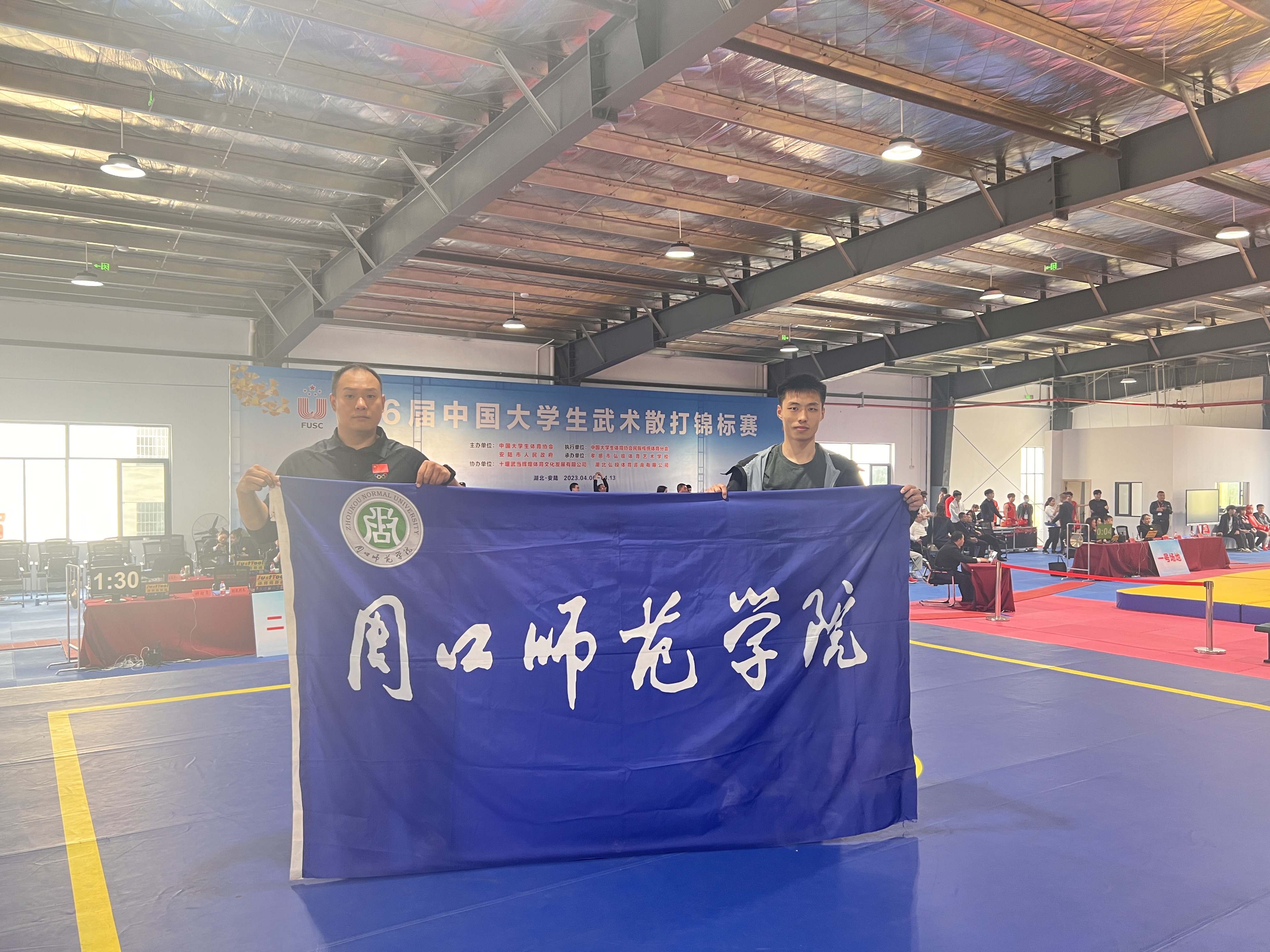 据了解,本次比赛周口师范学院首次参加,该校体育学院学生李锦豪在比赛中过关斩将、奋勇拼搏,经过5天比赛,最终获得男子甲组72公斤级冠军。
