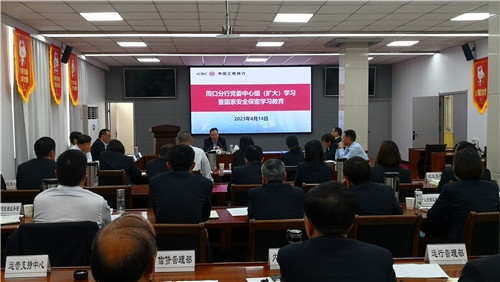 4月14日,工行周口分行组织党委中心组(扩大)学习,该行党委主要负责人为参会的班子成员,各支行、部门负责人讲授题为《贯彻党的二十大精神 筑牢安全保密防线》党课。(李玉)