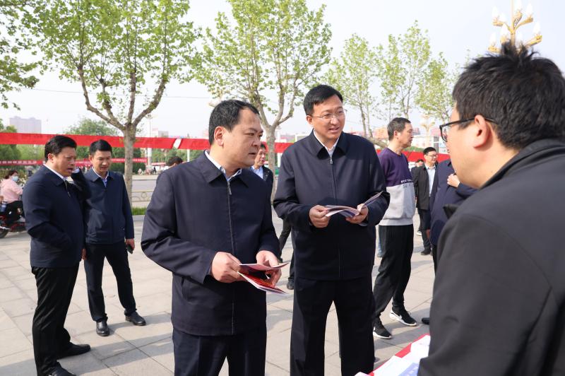 李全林、董鸿等县四个班子领导先后来到各单位宣传展台,认真观看了活动宣传展板,与工作人员亲切交谈,详细了解各单位宣传内容和活动开展情况。