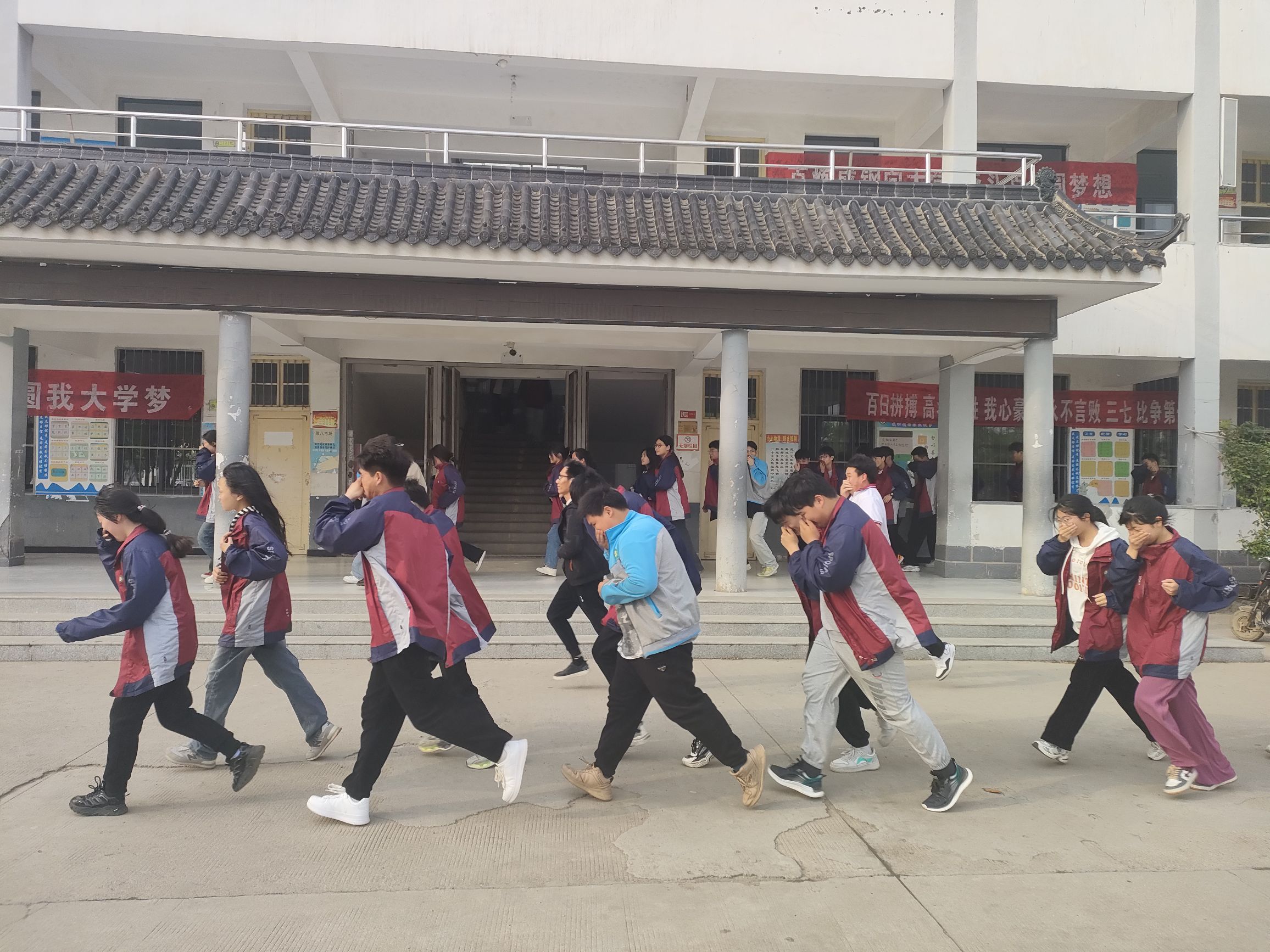 在火灾应急疏散演练活动中,当警报响起,同学们迅速从教学楼有序撤离到校园安全区域,撤离历时1分40秒,整个演练过程做到了快速、安全、有序。在地震应急疏散演练活动时,同学们听到警报声后,纷纷迅速反应,立即采取避震措施。