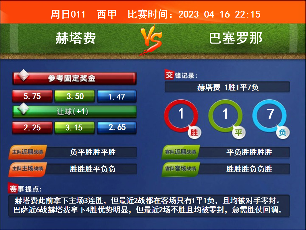 赛事提点:赫塔费此前拿下主场3连胜,但最近2战都在客场只有1平1负,且均被对手零封。巴萨近6战赫塔费拿下4胜优势明显,但最近2场不胜且均被零封,急需胜仗回调。