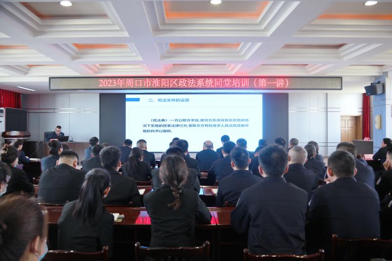 为深入学习贯彻党的二十大精神,进一步提升政法干警政治素质和业务水平,凝心聚力推动政法工作高质量发展。4月15日上午,由淮阳区委政法委主办、区检察院承办的2023年淮阳区政法系统同堂培训启动仪式暨首场培训在该区人民检察院举办。据悉,这是全市政法系统率先启动“同堂培训”活动,全区政法干警将同上一堂课、齐议一个案、共研一部法,同学共进凝共识。