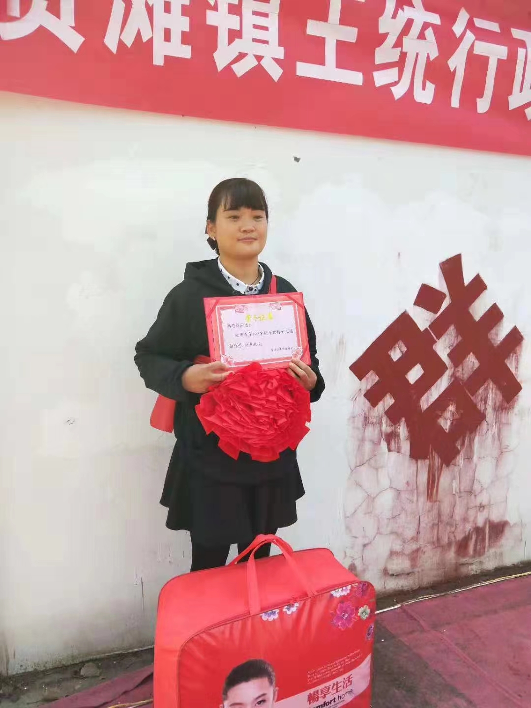 王统村党支部书记王学兴说,冯艳萍是多年来镇、村两级孝老敬亲的先进典型,2017年7月,冯艳萍被贾滩镇党委、镇政府评为“孝顺媳妇”,2018年、2023年,她先后被王统村党支部、村委会评为“孝顺媳妇”。②10