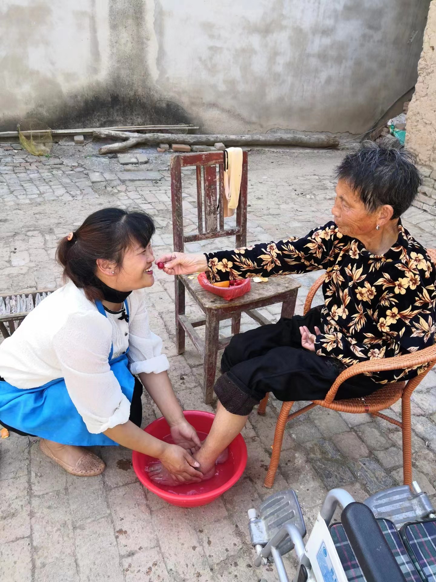 冯艳萍的母亲杜玉荣今年78岁,已经偏瘫6年。为了方便随时照顾她,冯艳萍经常把她接到县城一起生活。虽然母亲生活不能自理,当看见冯艳萍难过伤心时,母亲还会给她擦眼泪,让冯艳萍瞬间感受到了母爱和亲情。