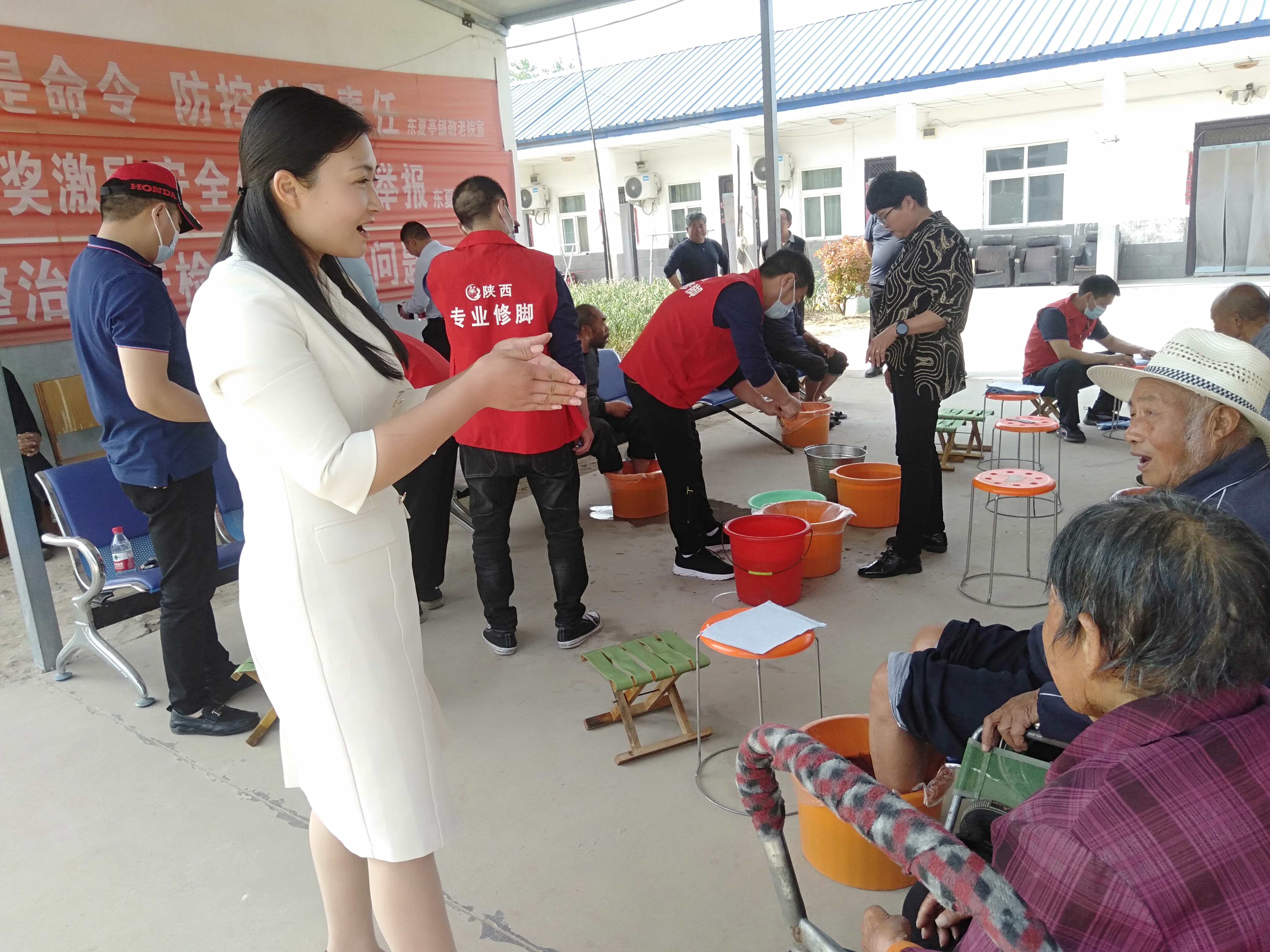 在活动现场,老人们坐在板凳上排成排,每人跟前放个热气腾腾的洗脚盆泡着脚。冯婵娟等人与每一位老人亲切交谈,认真询问老人的身体情况,叮嘱修脚师傅认真为老人们泡脚、修脚、按摩。由于长时间没有剪指甲,有个别老人的指甲不仅厚,而且指甲两边都嵌到肉里了。